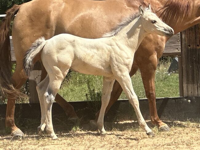 Fantastisk Buckskin Paint Horse hingst - sportig & älskvärd! - Plats: 34396 Liebenau General Nixxon - vacker Paint Horse hingst (född 5.25, sluthöjd ca 145 cm) imponerar med sin slående buckskinfärg, sin korrekta, kompakta och starka konformation samt sin goda muskulatur. Frisk, stark och med en bra grund - ett riktigt blickfång! Hingsten växer upp i en flock med andra hästar i samma ålder och är absolut socialt accepterad. Han hanteras dagligen, känner sin veterinär och hovslagare vid leverans, är regelbundet avmaskad och vaccinerad i linje med sin ålder. Nixxons karaktär är övertygande över hela linjen: mycket tillgiven och människoorienterad, gosig, väluppfostrad, okomplicerad och cool. Han älskar att gosa och är en stor rörelsebegåvning - perfekt för fritid och tävling. Hans stamtavla får reininghjärtan att slå snabbare - sonson till HR Mobster/Gunnersaurus Rex. Han har de bästa förutsättningarna för sporten, men förblir trevlig att hantera hela tiden. En riktig pärla för den som söker en talangfull, kärleksfull unghäst med stor potential!