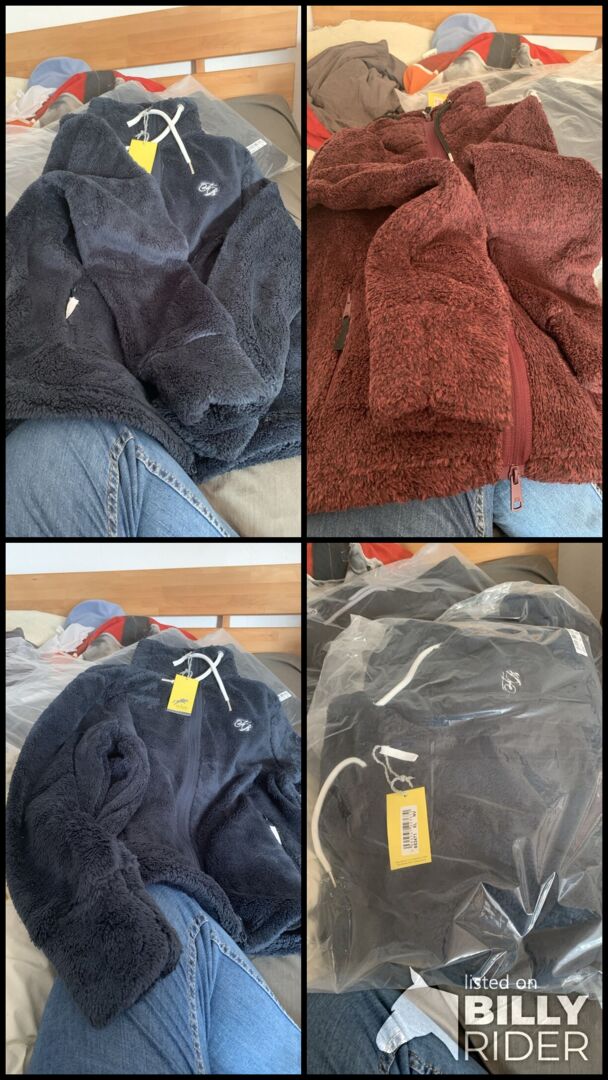 Jackan är i storlek XL Följande färger finns tillgängliga: Svart, 2 gånger marinblå och en mörkröd (se bilden) Eftersom de alla fortfarande har sin prislapp och är i sin originalförpackning, skulle jag vilja ha 35 euro för jackan.