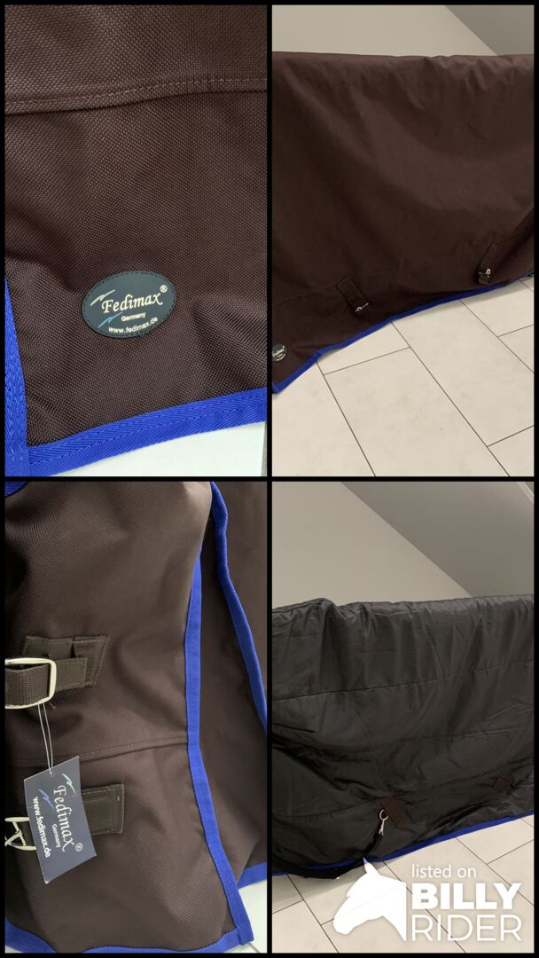 Fedimax Rainmax Outdoor Blanket NEW - Super robust utomhusmatta 100g, 135 cm, 1800 denier, vattenpelare 6.000-10.000 mm, dock vattenånga genomsläpplig (fuktiga hästar torkar av). Etikett närvarande, var bara på hästen för montering med skyddande filt, tyvärr passar inte.