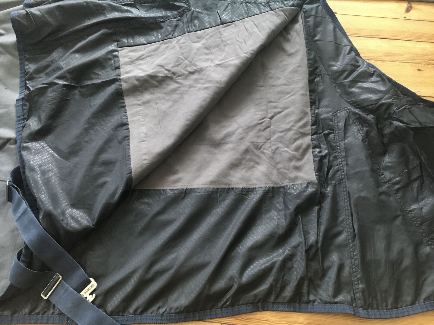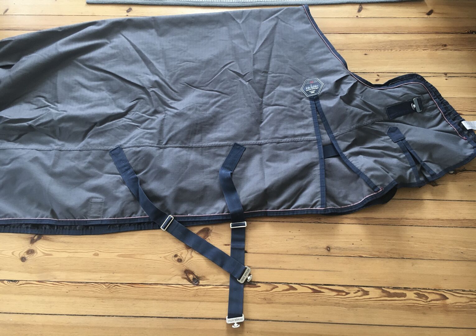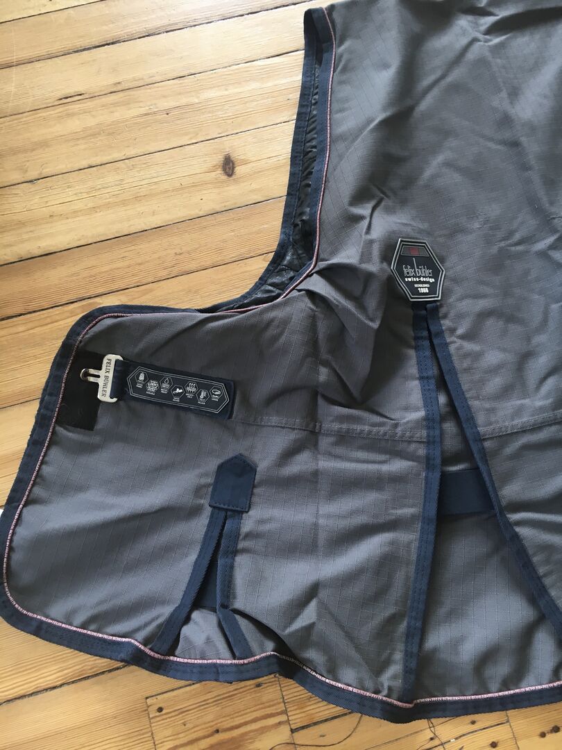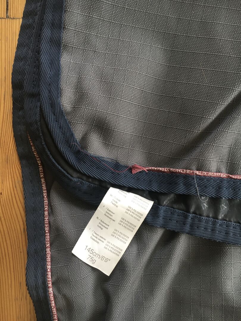 Felix Bühler Filt 75g 145cm - Säljer stor 75g filt från Felix Bühler (NP 169,-) i grått med blå/röd kantning. Storlek 145, mikrofiber svett av insidan, axelvaddar. Passform smal vid bröstet.