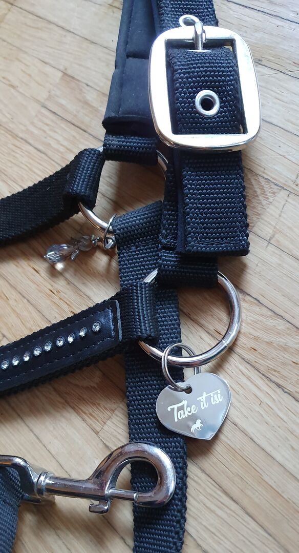 Felix Bühler Halter Glitter - Svart Felix Bühler halterneck med glitterstenar, storlek COB På begäran även med Soulhorse-märket "Take it Isi" och ängelfigur.