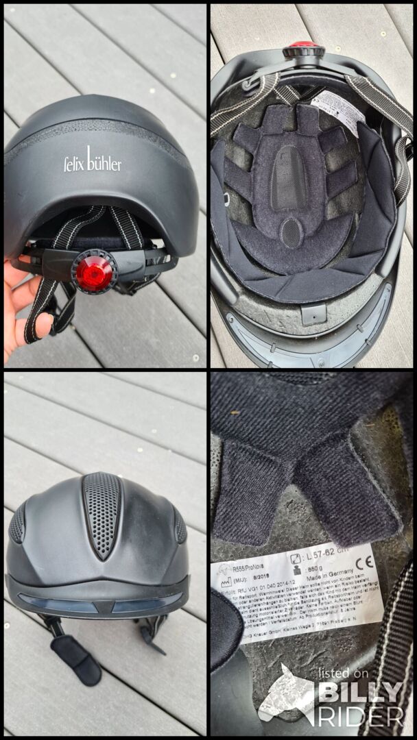 Felix Bühler-hjälmen, kraschfri! - Mycket välbevarad hjälm från Felix Bühler i svart. Absolut kraschfri! Tillverkningsår 2018.Storlek L motsvarar 57-62cm. Inlägget är nytvättat. Mycket gott skick med några få användningsspår