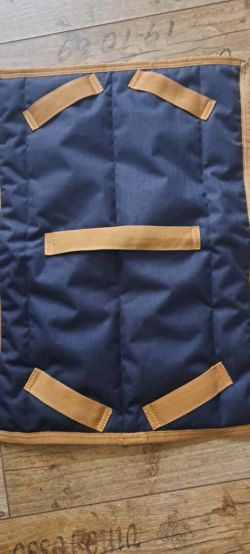 Felix Bühler kombi regnmatta HKM 125cm - Combi regnmatta i storlek 125cm från Felix Bühler Mattan har en reva som har sytts men som inte har någon negativ effekt. Mattan har också en löstagbar innermatta med vikt 100gr. Du kan använda mattan som en vanlig regnmatta (borstad på insidan) eller använda den med innermattan för kalla dagar. En magrem ingår också. Men har aldrig använts.