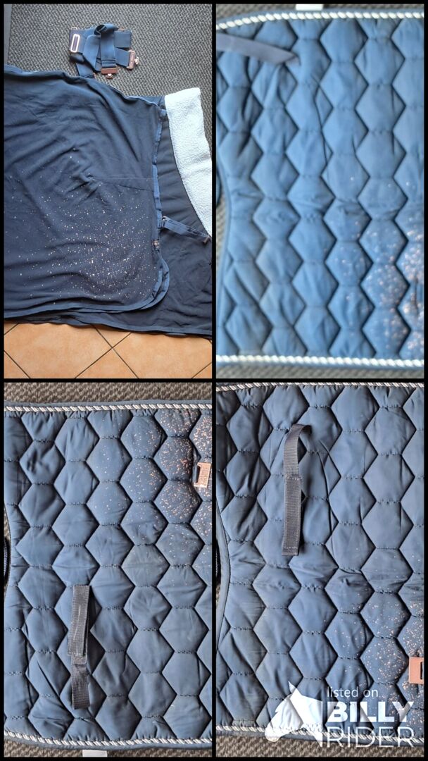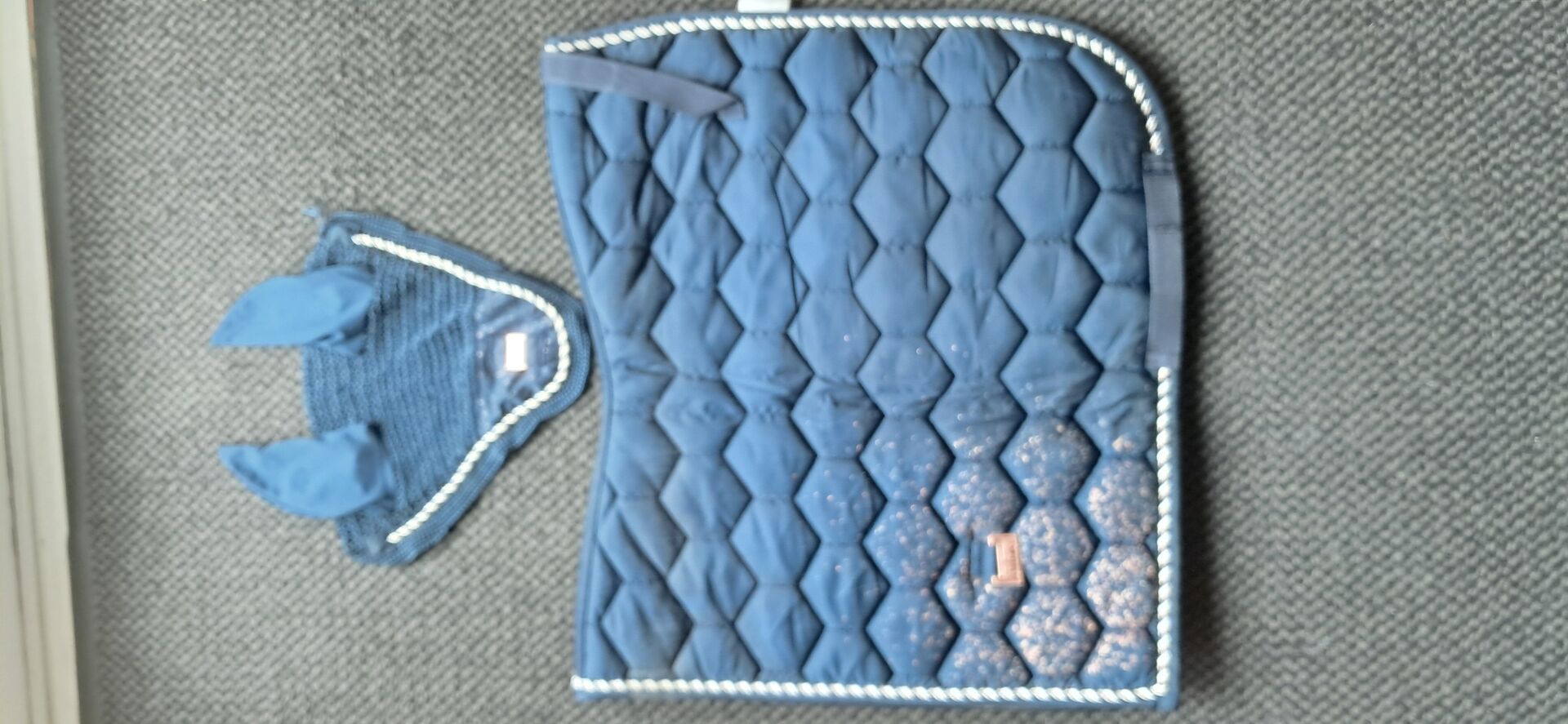 Aschwitz-matta med magremmar, vacker pälskrage och glitter på ena sidan.