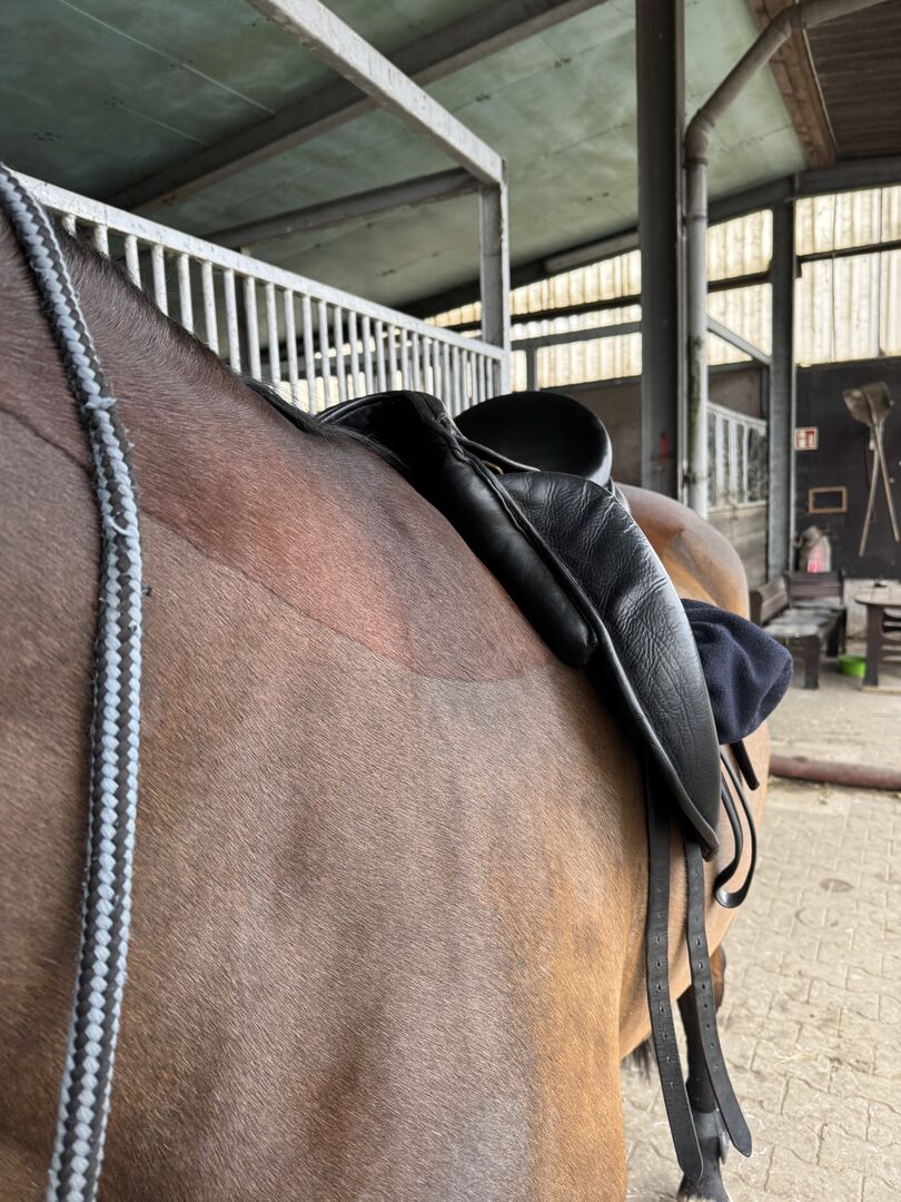 Har regelbundet kontrollerats av sadelmakaren och vadderats i november 2025.