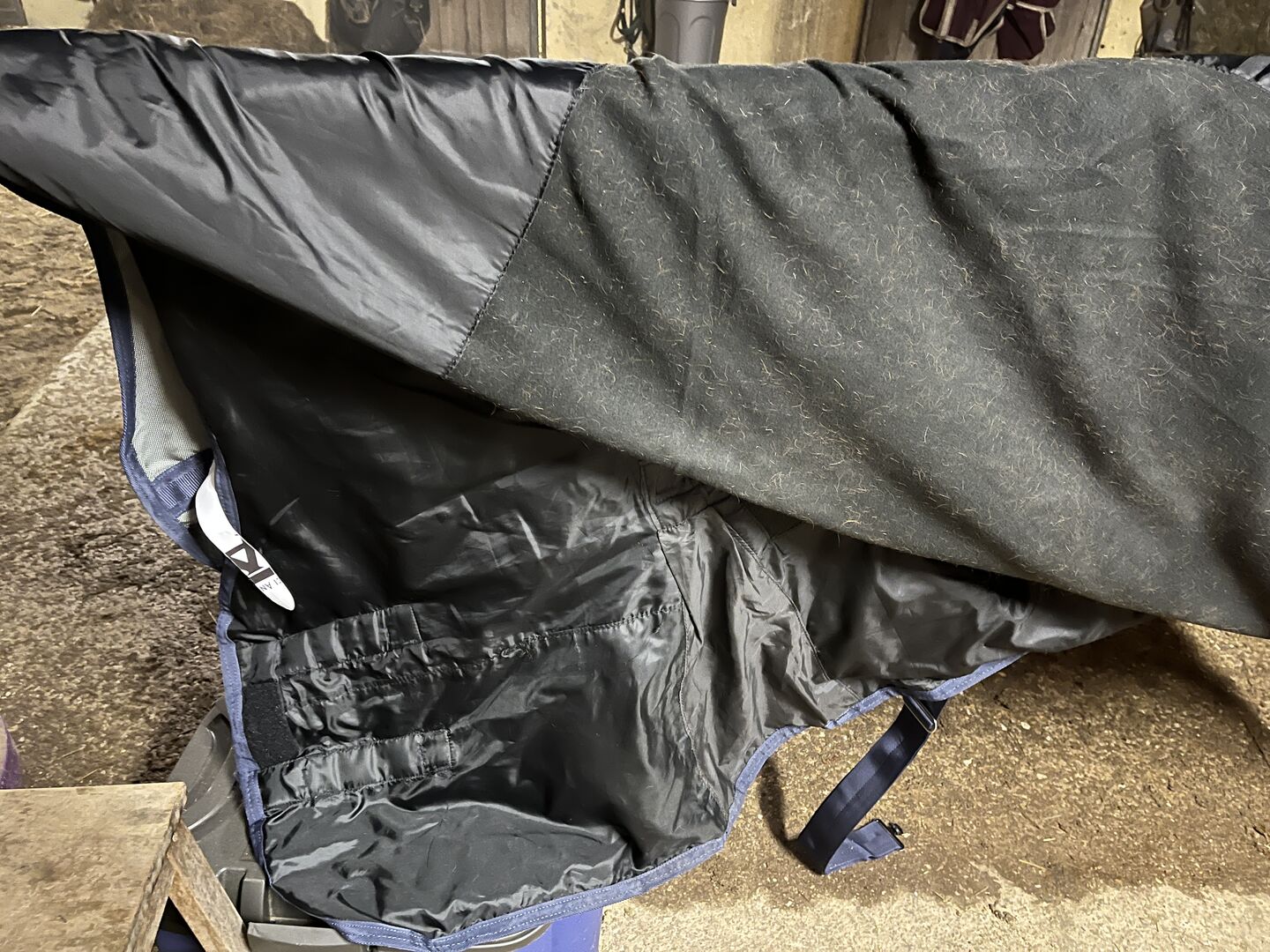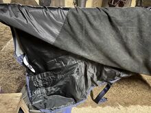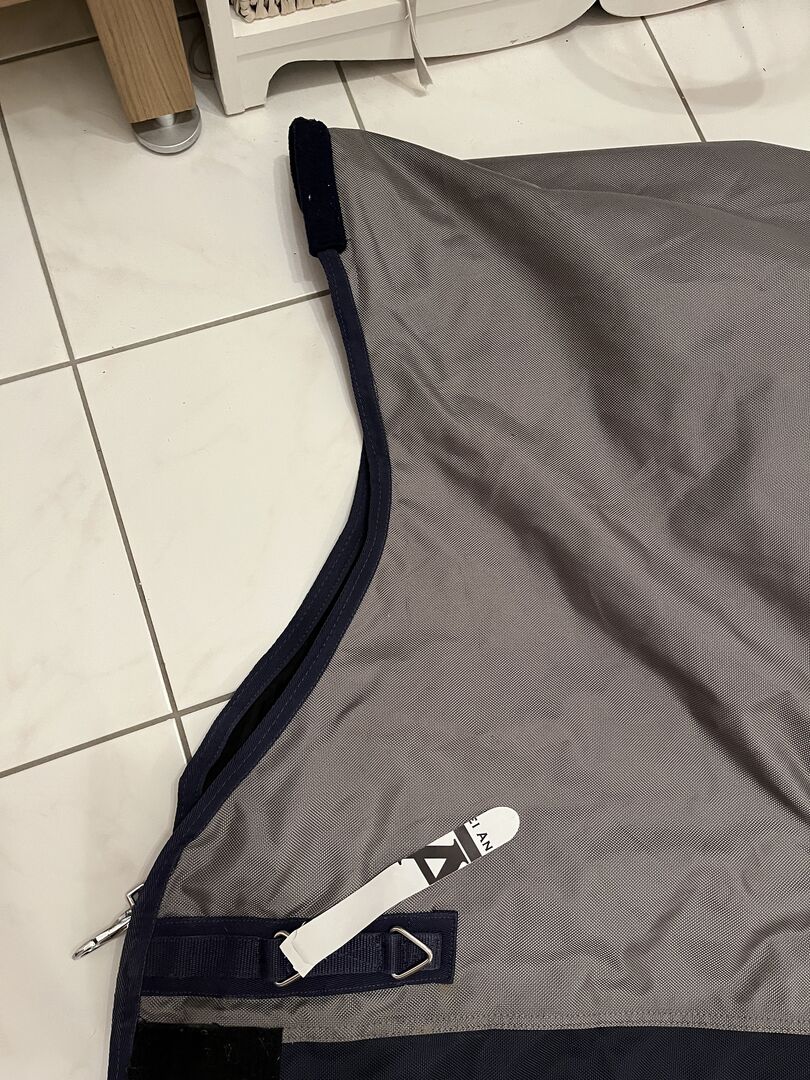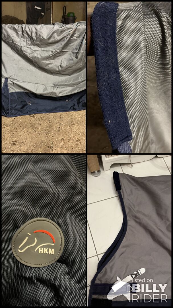 Filt med fleece från HKM - Till salu ett hästtäcke från HKM med innerfleece. Storlek 155cm. Withers pad. Hög hals Har blivit nyrengjord, men tyvärr kommer hästhåret inte ut ur fleecen.
