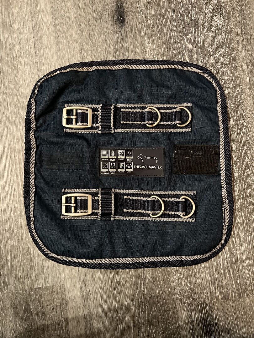 Filtförlängning 35,5 cm x 35,5 cm blå petrol - Jag säljer en sällan använd takförlängning från Thermo Master. Den mäter 35,5 cm x 35,5 cm. Tyvärr hade den inte önskad effekt på min häst och täcket är fortfarande för litet på bröstet. Det är därför den måste tas av igen. Jag köpte det bara här själv och använde det bara för att prova det på. Färskt rengjord, naturligtvis.
