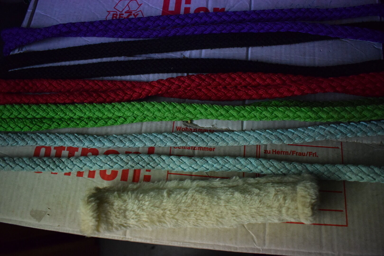 Flätade tyglar - Säljer mina flätade tyglar. Med undantag för de ljusblå är de alla i gott skick. De ljusblåa har bara tappat i färg med åren. Nackskyddet kan köpas tillsammans med tyglarna. Jag skulle vilja ha 3€ för varje bit.
