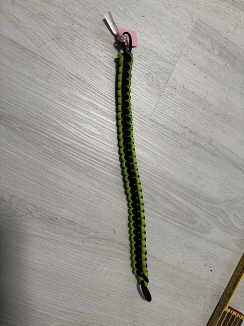 Flätat pannband - Självflätat pannband i svart/grönt. Kan användas på båda sidor. Längd 38cm Privat försäljning därför ingen garanti eller retur. Frakt möjligt till självkostnadspris.