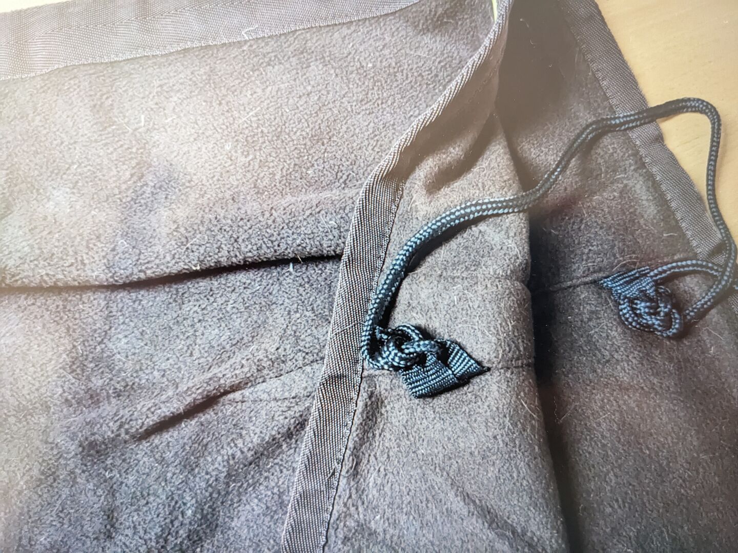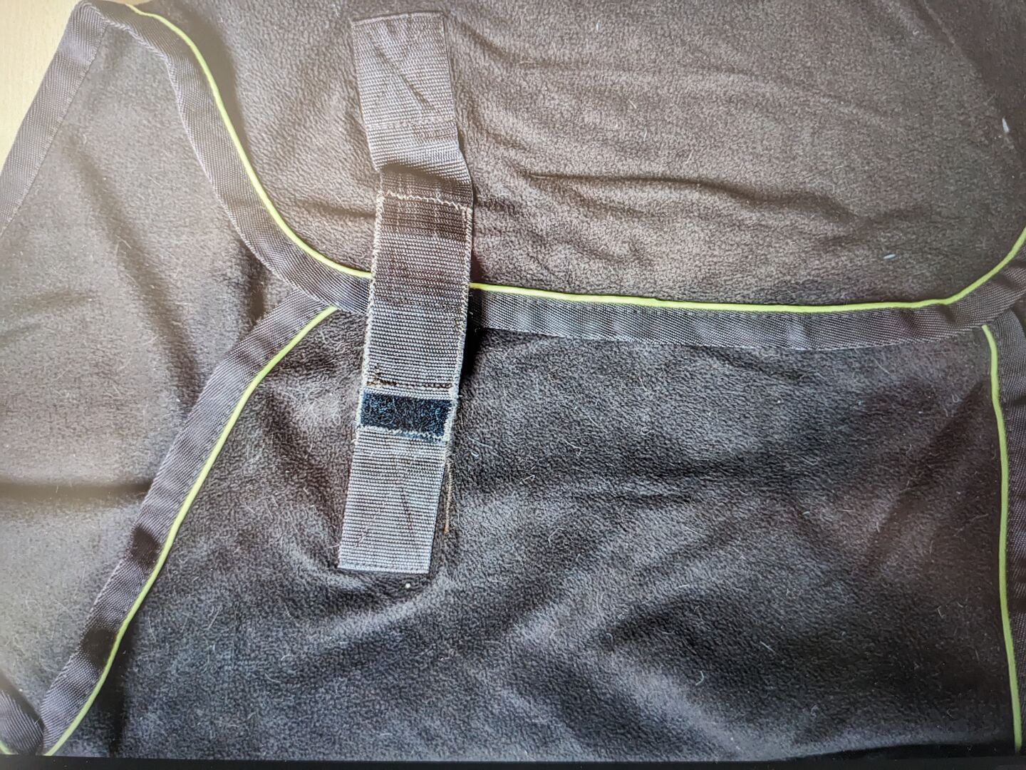 Fleecefilt 150 cm - Framtill med kardborreknäppning, mörkbrun, bra skick, se foton.
