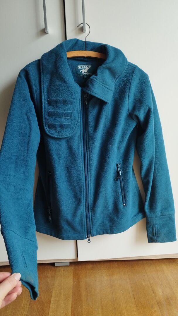 Fleecejacka med hög krage storlek M i petrol - Säljer en fleecejacka storlek M i petrol. Tvåvägsdragkedja, hög krage med kardborreband och två sidofickor med dragkedja. Nyligen tvättad.