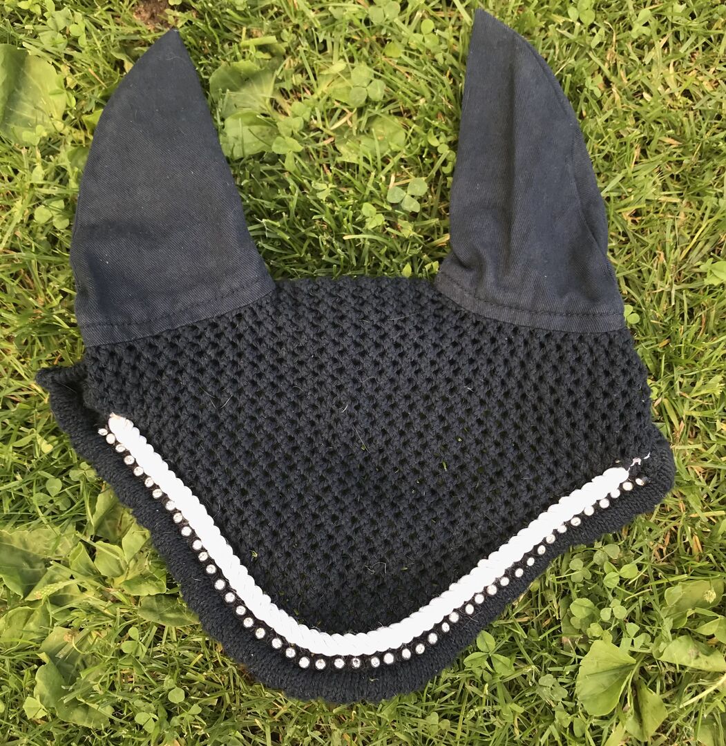 Fluga öron, blå, med strass och snöre, storlek ponny