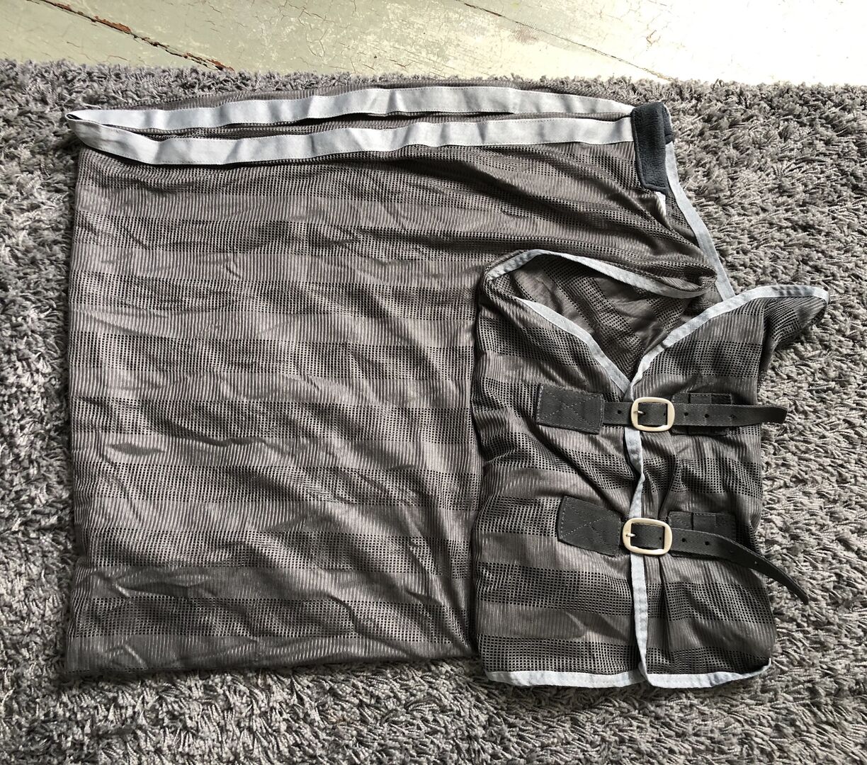 Här är en fantastisk flugtäcke i grått med 155 cm rygglängd.