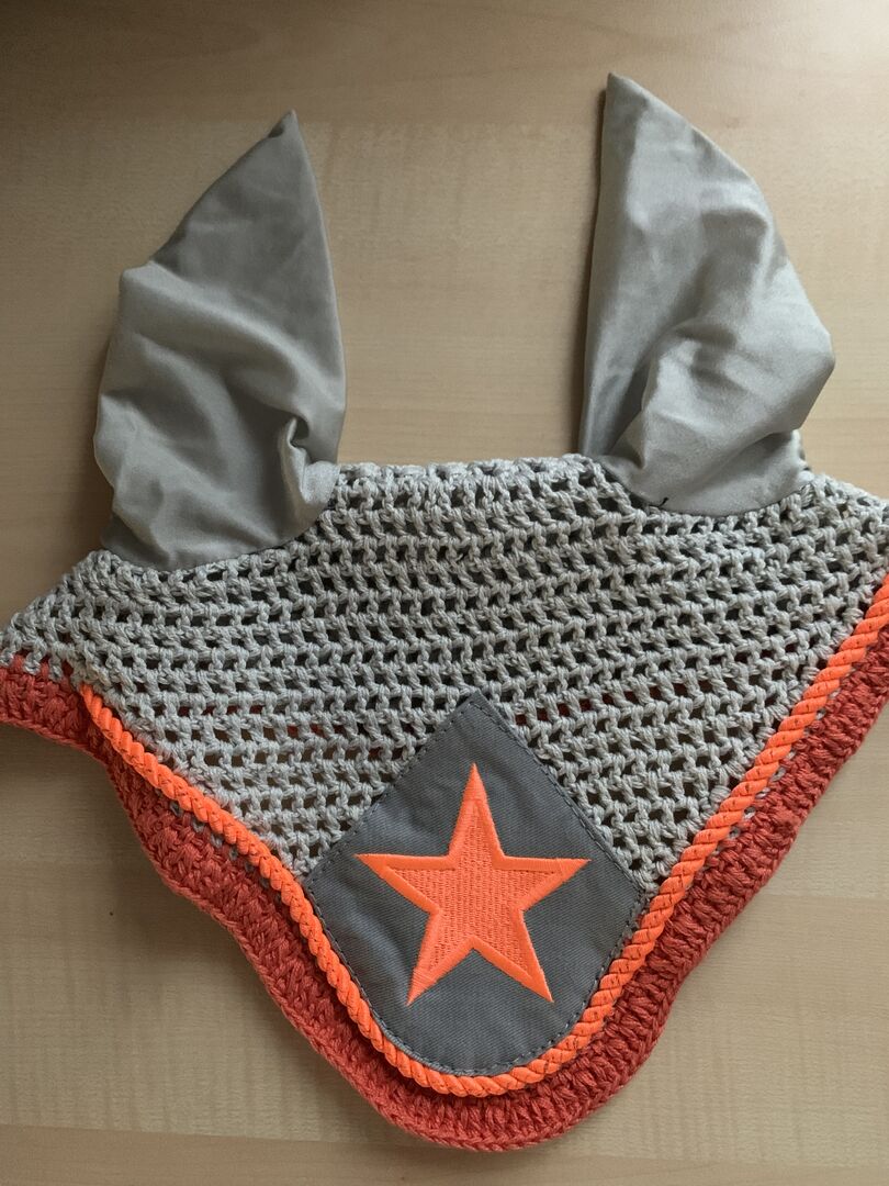Fly Cap / Fly Ears Ljusgrå Neon Orange Pony - Aldrig använd flughätta med ljusorange.