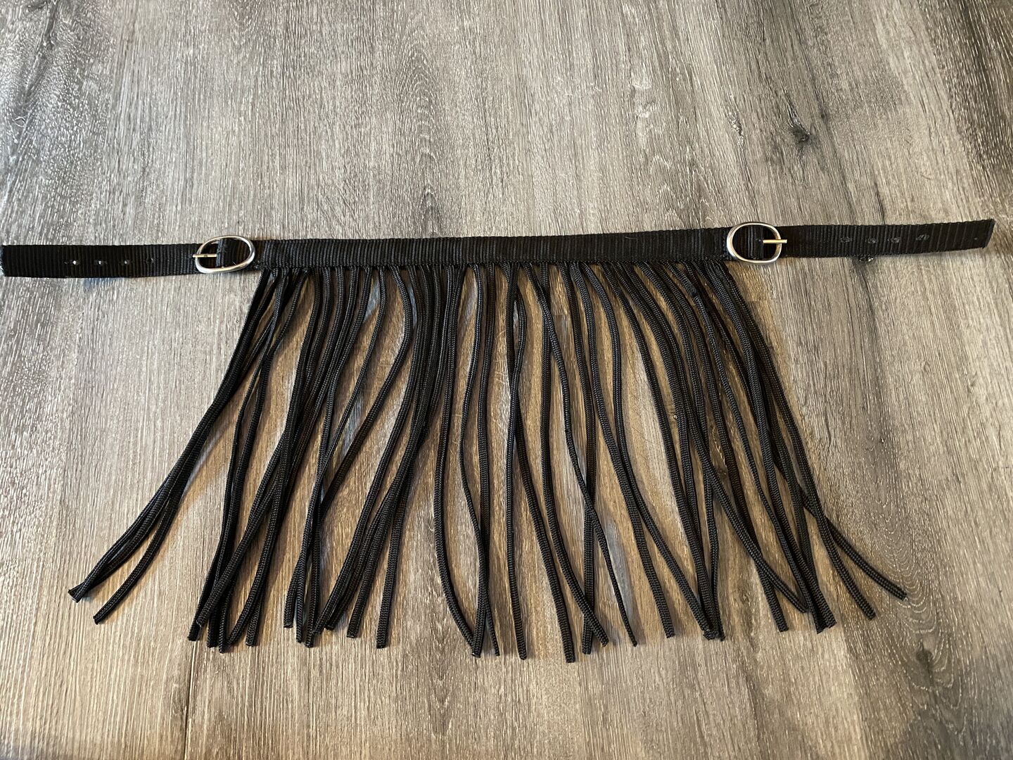 Fly Fringes med spännen WB Warmblood - Jag säljer flugfransar i nyskick med spännen i storlek Warmblood. Jag har sällan använt dem, så de är praktiskt taget nya. Fransarna är nytvättade. Alla band är intakta liksom spännena.