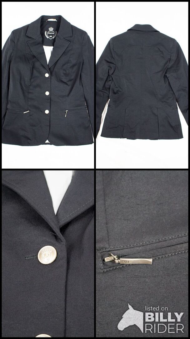Fouganza Ladies Tournament Jacket svart 36 - Den fantastiska Fouganza Show Jacket är den perfekta följeslagaren för den kvinnliga ryttaren. Den svarta jackan har två fickor framtill och storlek 36. Det stretchiga materialet passar perfekt till kroppen och ger absolut rörelsefrihet. Den är i mycket gott skick och har inga defekter. To the seller's offerlaunch
