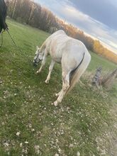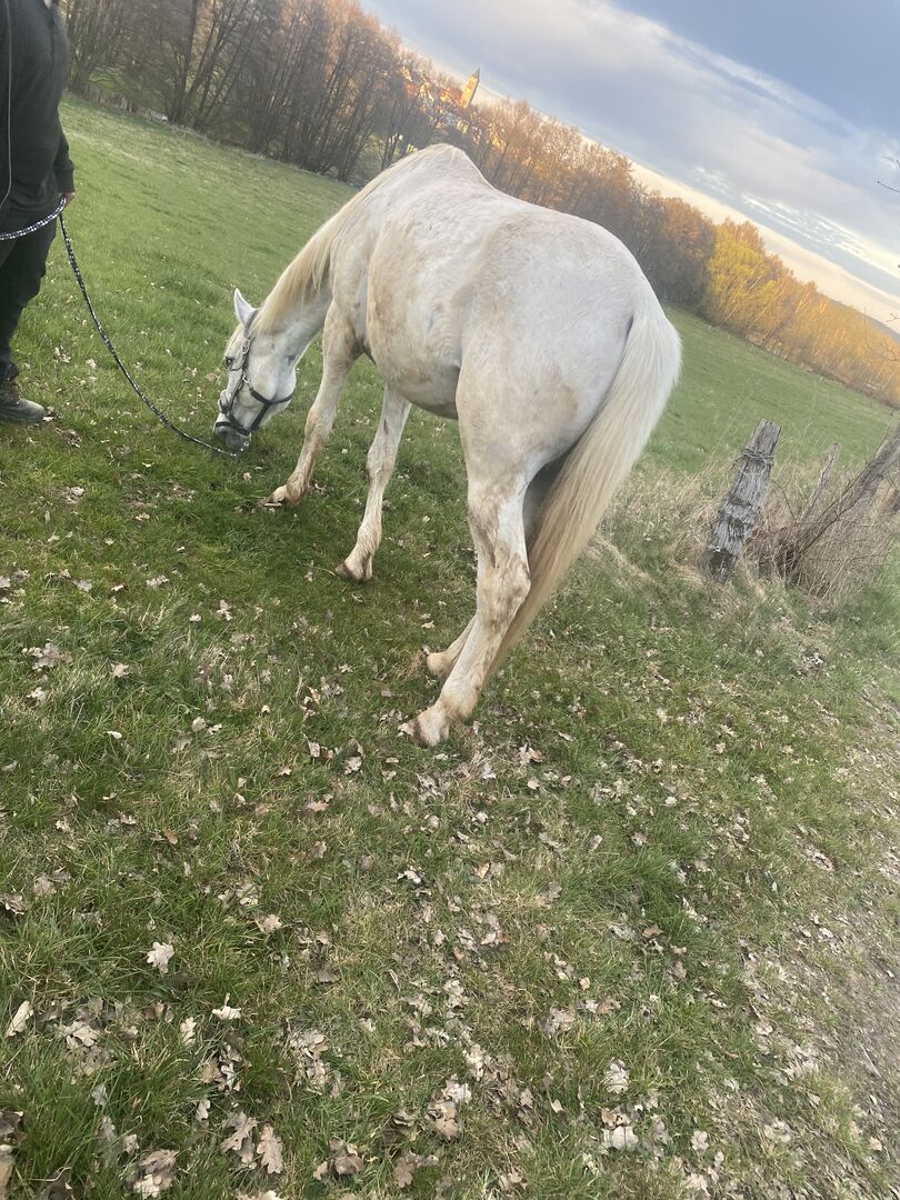 Framtida barn och nybörjarhäst - Vi erbjuder här vår 6 år gamla tyska sporthästvalack. Han bryts för närvarande försiktigt in och känner redan ryttarens vikt på lungan på en promenad samt guidade åkattraktioner med små barn. Han är super orädd, folkorienterad och lämplig för barn. Han är supersöt, försiktig och gosig med de små. Han är social i flocken och ganska låg i rang. Han har haft en osteopatisk kontroll. Även med en ryttare på honom har han aldrig visat någon stygghet. Vi har inte heller kunnat hitta något som han är rädd för. Han är barfota och visas regelbundet för hovslagaren. Han kommer från dålig djurhållning och vi bygger för närvarande upp hans muskler. Han var väldigt avmagrad nu måste han långsamt vänja sig vid sin nya kropp. Han har en full hoppstamtavla och är uppfödd på det sättet, men jag ser honom inte som en sporthäst