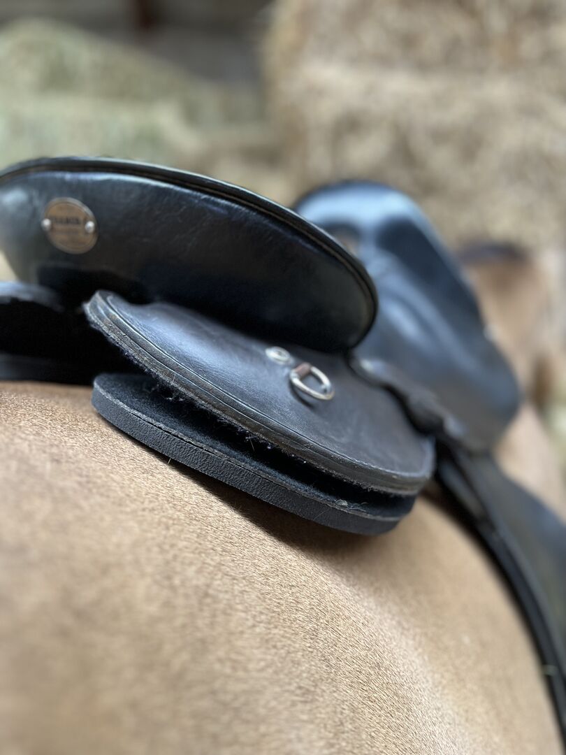 Sadel med träd, men det fina med denna sadel är att den levereras med 2 extra tjocklekar i lager, som du kan justera med hjälp av kardborreband längst ner på sadeln.