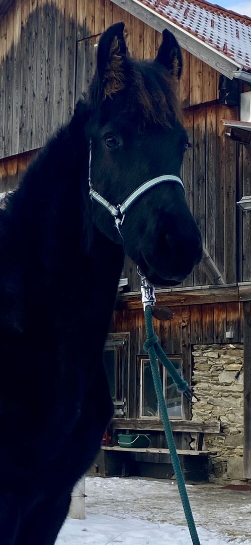 Hon växer upp i en flock och vet redan hur man rider i släpvagn och leder i handen. Hon kan flytta till sitt nya hem när som helst eller också stanna hos oss på uppfödningscentret.