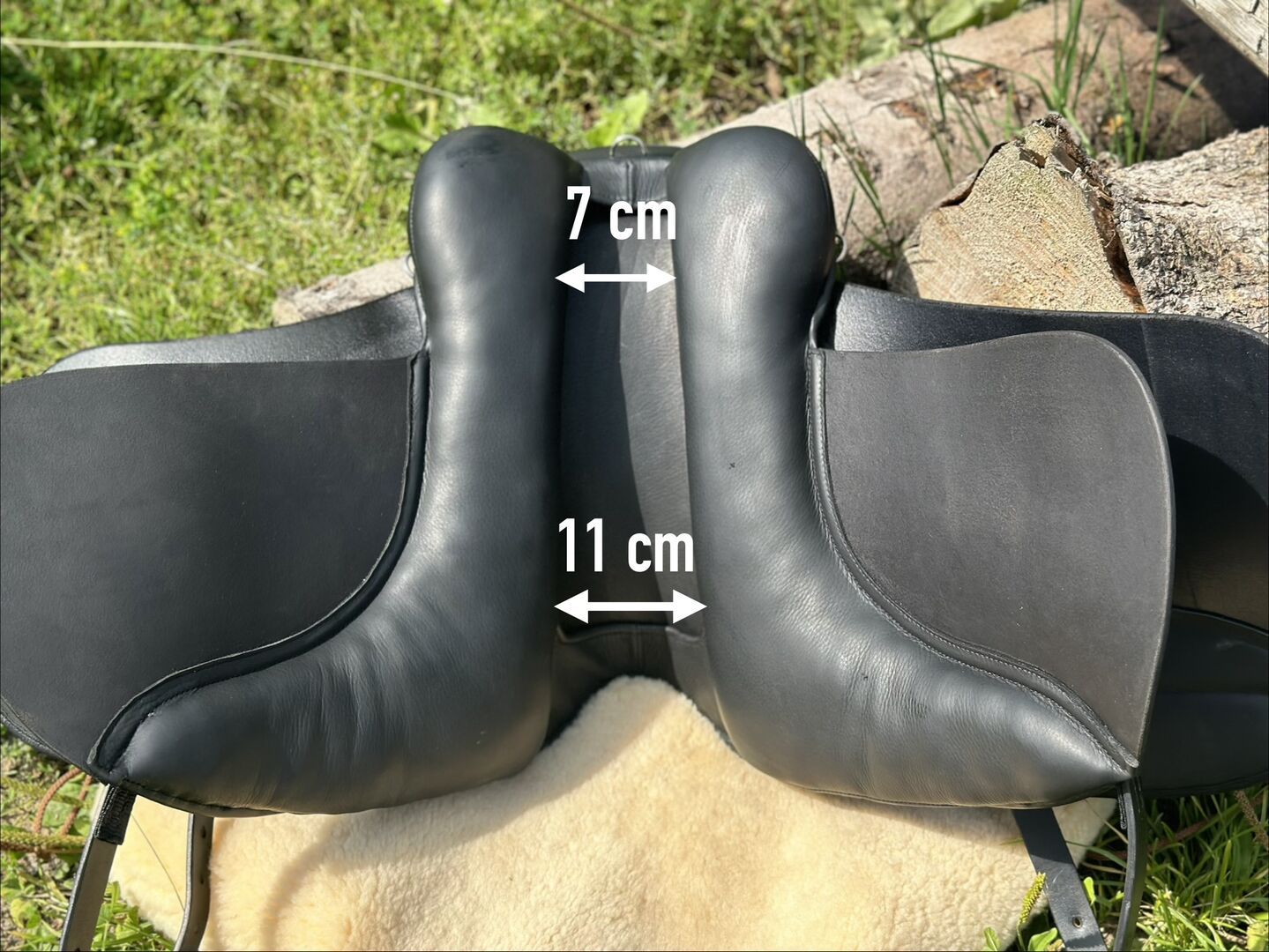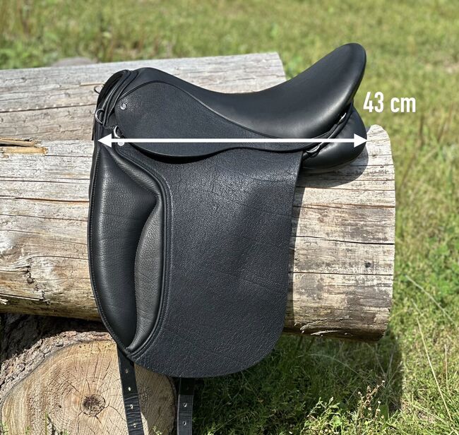 Fritids- och allroundsadel kort + bred, frakt på prov, isländska Haflinger Tinker fritidshästar - Allround-sadel för kraftigt byggda hästar, rak till lätt krökt rygg, låg manke - 17" sits - kort kontaktyta ca 40 cm (total längd 43 cm) - KW 34 - bred ryggkanal (se foton för mått). Leverans efter godkännande (försäkrad med DHL-spårningsnummer).