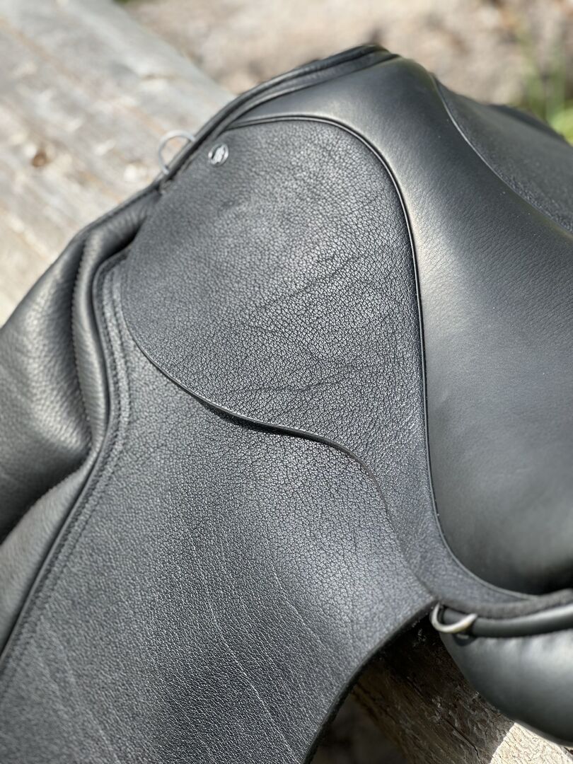 Tillverkare: Jeremy Rudge Saddlery England Modell: G5 med ponnyträd Så gott som ny demonstrator (2024), riden 5 gånger Färg/läder: Black Buffalo (buffelläder) Stoppning: Fårull Tillbehör: Extra D-ringar, stigbyglar med kardborreband, stigbygelhållare, skyddshölje Pris: 2.200 euro inkl. moms (nytt pris 3.900 euro)