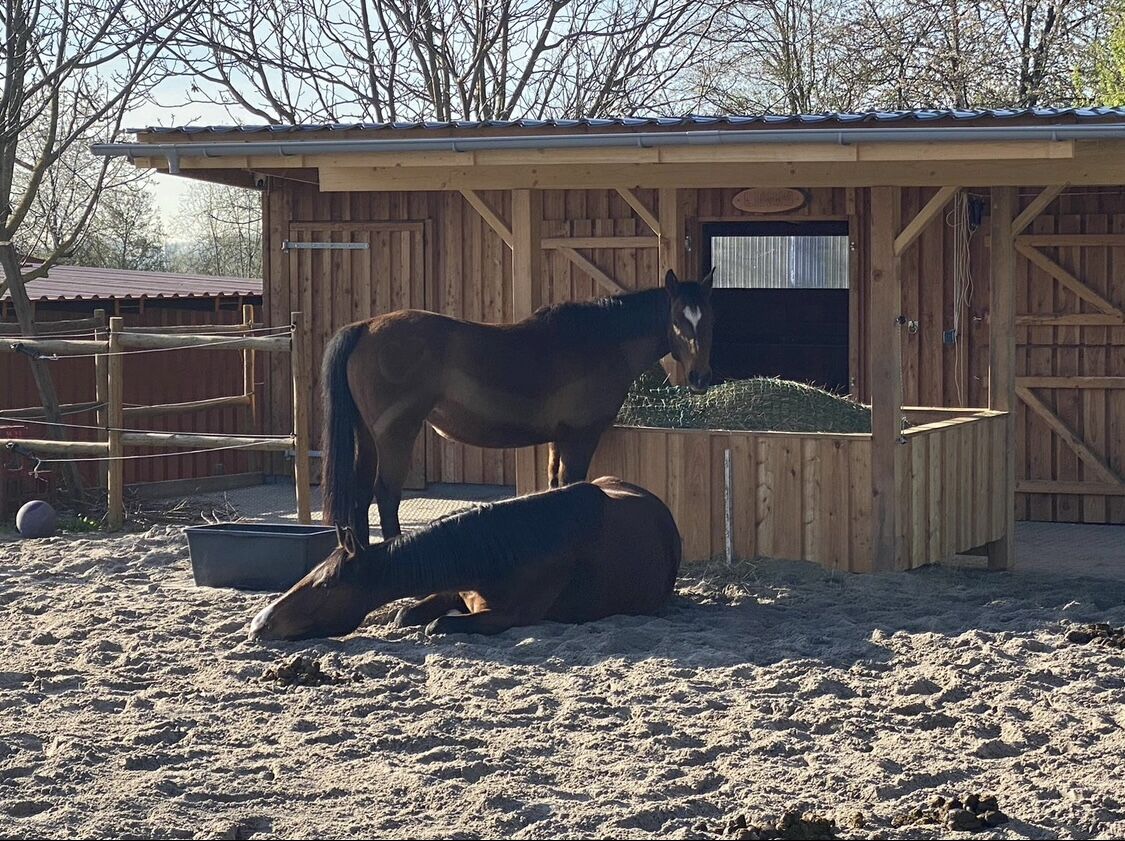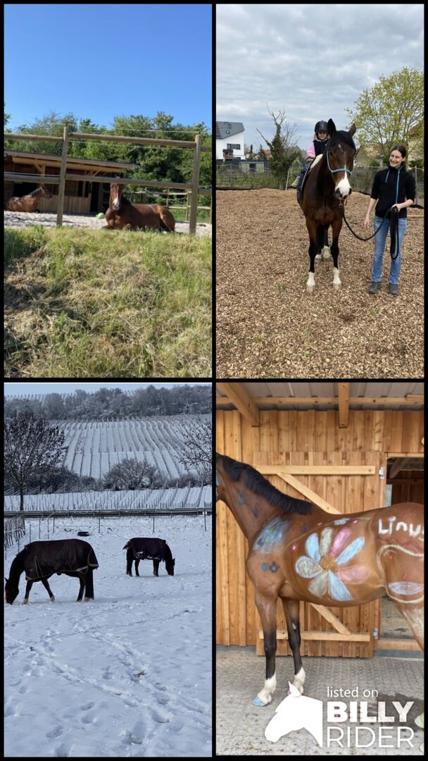 Fritt utrymme i det öppna stallet - Jag har en ledig plats i ett öppet stall. Min 8-åriga valack ser fram emot att ha en följeslagare som han kan tumla runt i hagen, leka och gosa med. Han är ganska lågrankad, öppensinnad och gosig. Eftersom han är mycket skygg, skulle vi båda vara glada att ha en lugn kompis (sto eller valack). Vi erbjuder: 2 boxar, en asfalterad, täckt paddock och en liten sandarena för fri användning. Sandarenan kan också användas för mark/friarbete. Mycket bra hö finns tillgängligt 24/7 via en rundbal i nätet i stallet (inget ensilage, inget vått hö, inget portionerat hö). Täckt utfodringsområde (hö). Vackert ridområde direkt från stallet, longeringsområde på plats, ridhus, hoppbana och utomhusridbana kan nås med släp på 15-20 minuter (Nierstein Riding Club), tillgång till vattnet / bukten på Rhen, inom några minuters åktur, uppvärmda självvattnande tråg, el/belysning, sadelkammare, täckt rengörings-/tvättutrymme, hö och halm ingår (spån mot extra avgift), dagligt bete, tillgång via lerfri, asfalterad väg, semesterservice och 2-3 x stallservice per vecka (bete, stall och sandarena) skulle behöva inkluderas.