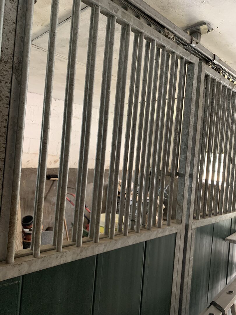 Front och skiljeväggar upptill metall och nedtill grön - Jag säljer skiljeväggar och dörrar till ett häststall (Sture och föl) från privat till självhämtare. Det är metallstänger upptill och gröna mellanväggar nertill. Mycket välbevarade för självdemontering mycket billigt! Jag listar endast priset för en skiljevägg här. Dimensioner: 2 x 149 skiljevägg 2 x 121 skiljevägg 2x 112 skjutdörrar 1 x 135 ovanför tråget För avhämtning i Heinsbergs distrikt.
