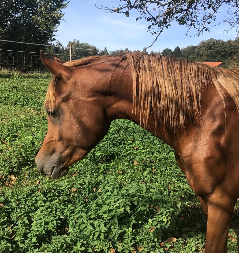 Fullblodsarabisk valack - Till salu mycket typfull fullblodsarabisk valack, med hisnande gångarter, född i mars 2021. Fadern är Magic Magnifique och moderns far är EKS Alihandro. Den kastanjebruna valacken är mycket människovänlig och extremt väluppfostrad, tycker om markarbete och är lätt att rida i fält. Han är lämplig för flockar och är väl socialiserad (var på fölbetet i 2 år). Han är bekant med boxuppstallning och gruppuppstallning. Han är lika lämplig för dressyr, fritids- eller distansridning.
