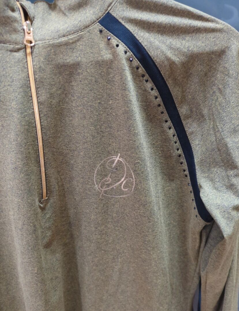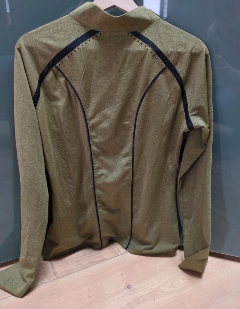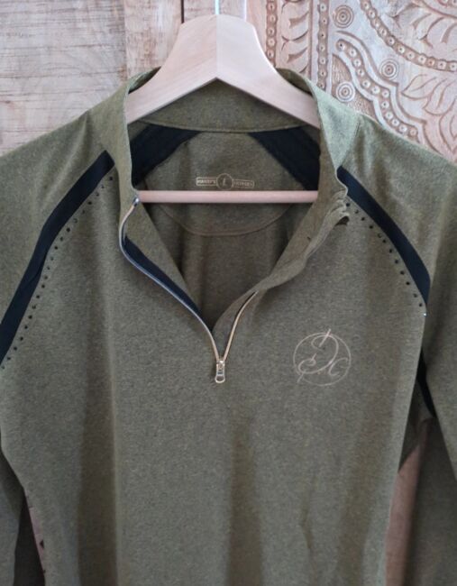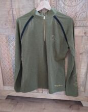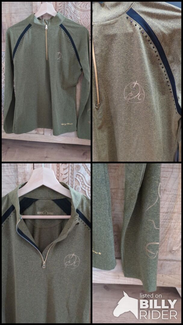 Funktionströja Harrys Horse oliv L - Funktionell lättvikts långärmad skjorta från Harry's Horse i melerat grönt, storlek L. Strassstenar, guldmärkning, tyginsatser. Se foton för detaljer. Som ny då behandlad med omsorg och buren väldigt lite. Tvättas alltid med milt rengöringsmedel.