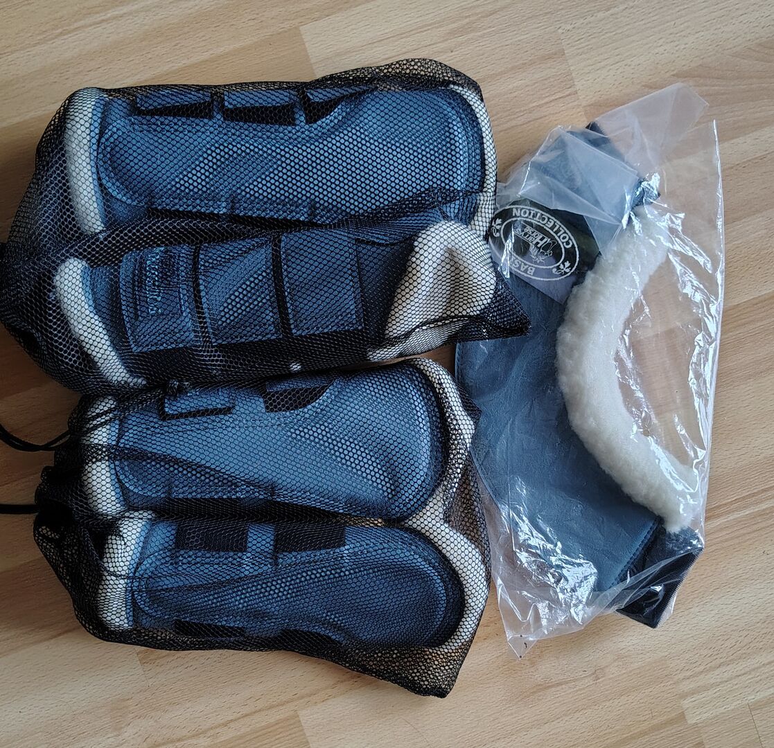 Gaiter set + klockstövlar New Ljusblå - Till salu en komplett uppsättning, oanvänd, med matchande klockstövlar i färgen ljusblå. Gångjärnsstorlek fram M. Gångjärnsstorlek bak L. Klockstövlar storlek M. Setet levereras med motsvarande nätfickor. Inget byte då privat försäljning.