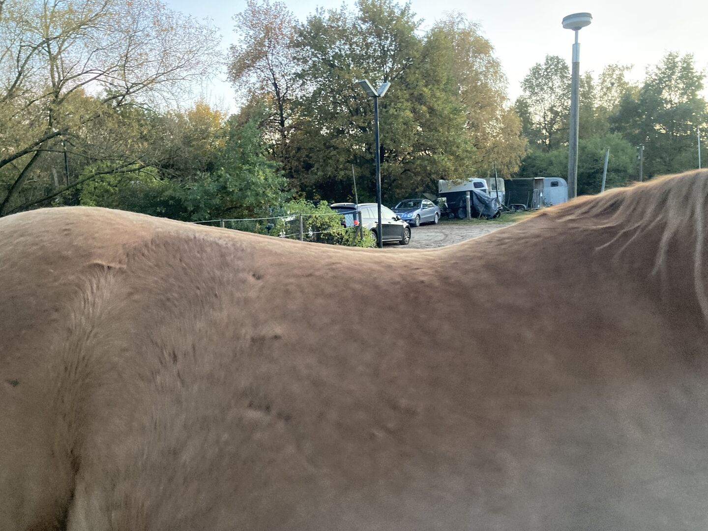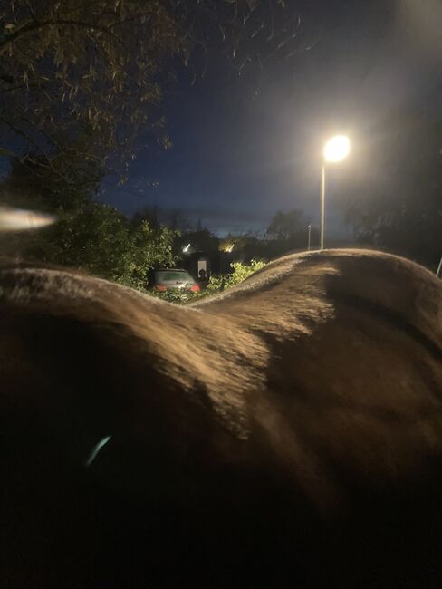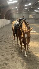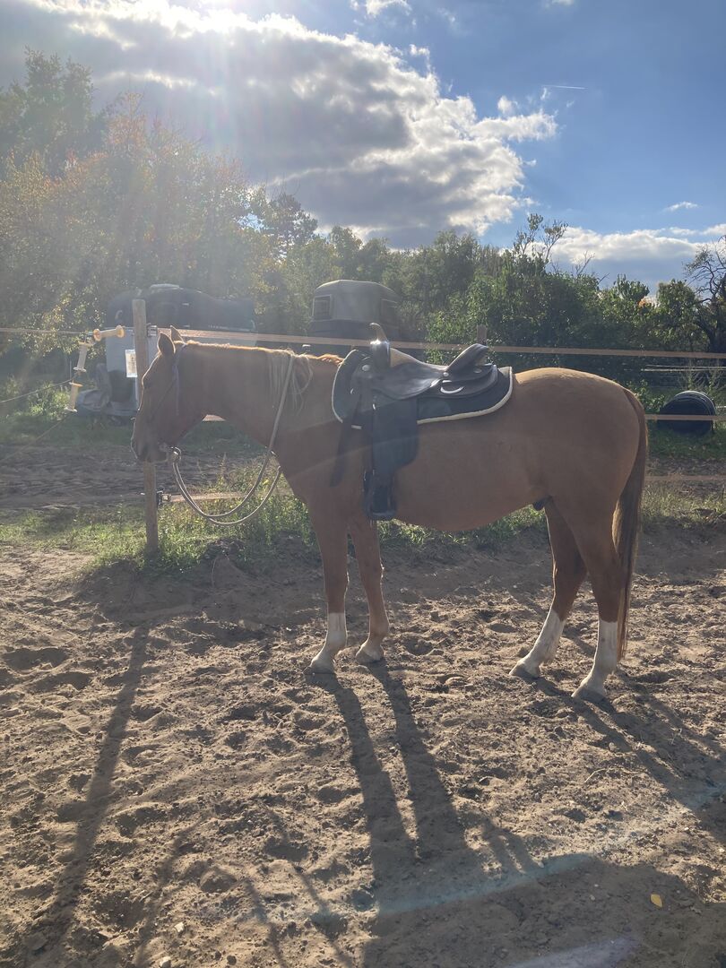Bilder på hästen kan skickas, han är en rundribbad arabmix. :)