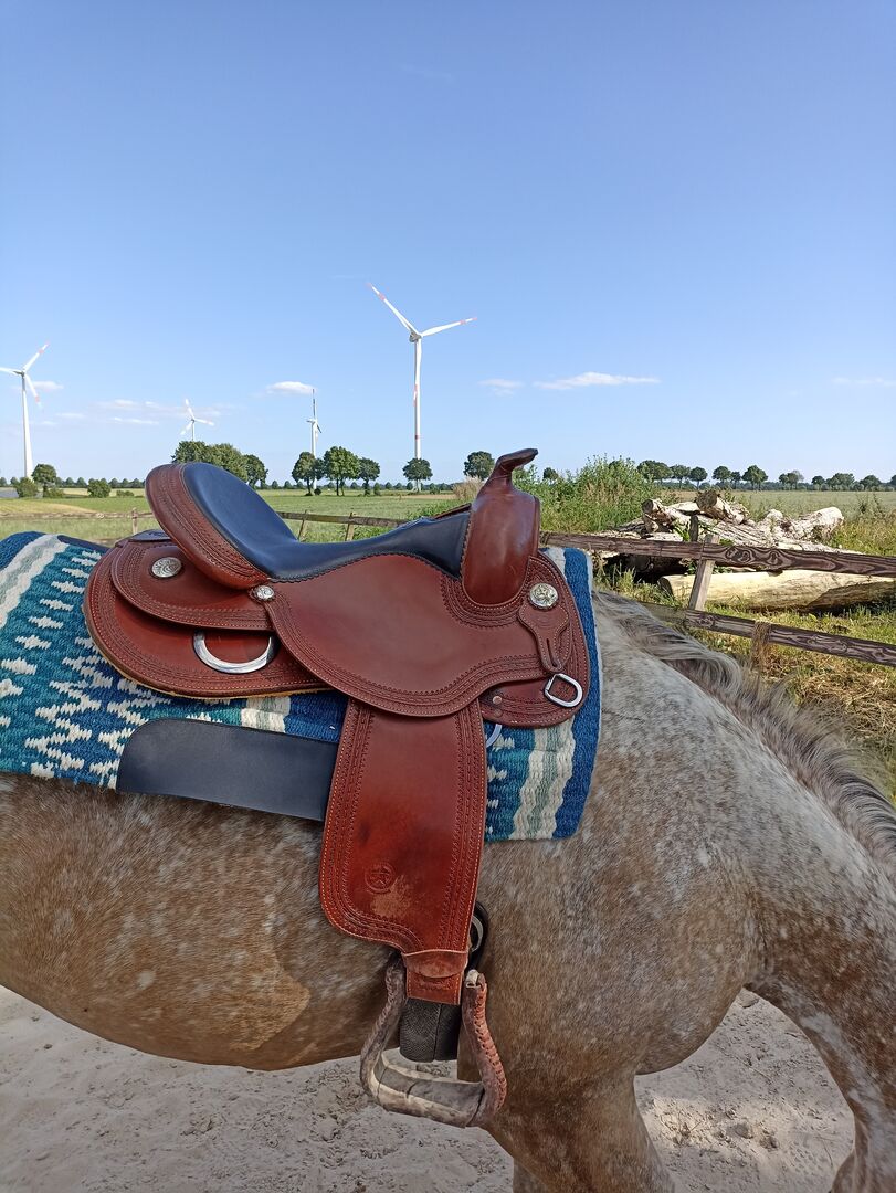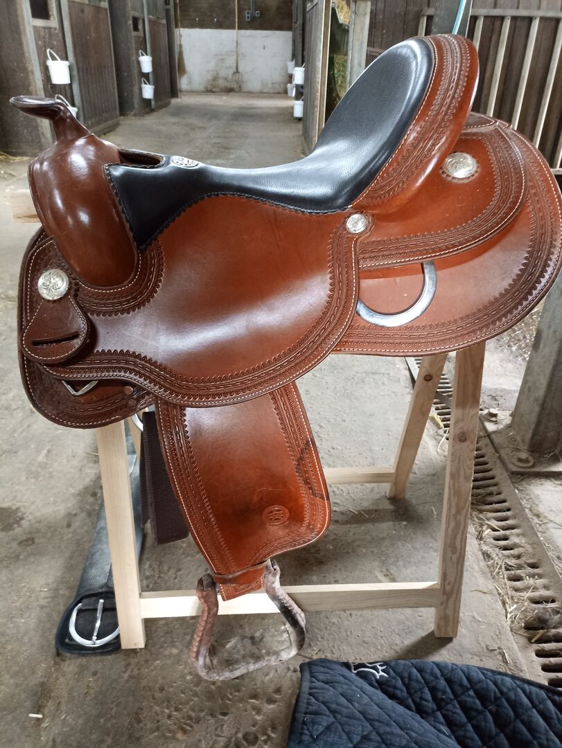 Garland Western-sadel - Garland Western sadel XFQH i bra skick. Mjukt gelsäte komplett med sadelgjord och pad. Som visas på bilderna. Sadeln säljs eftersom den är alldeles för stor för min nya häst.