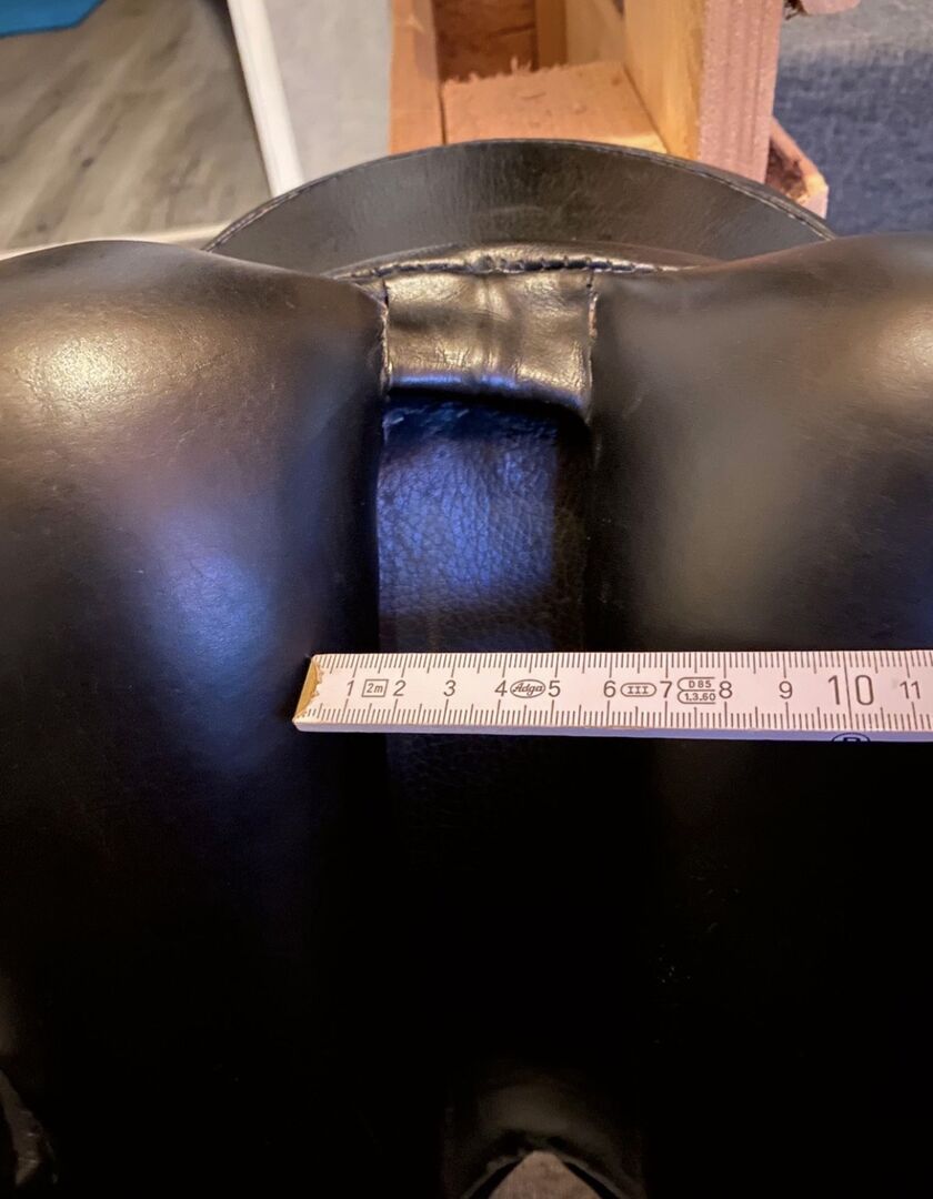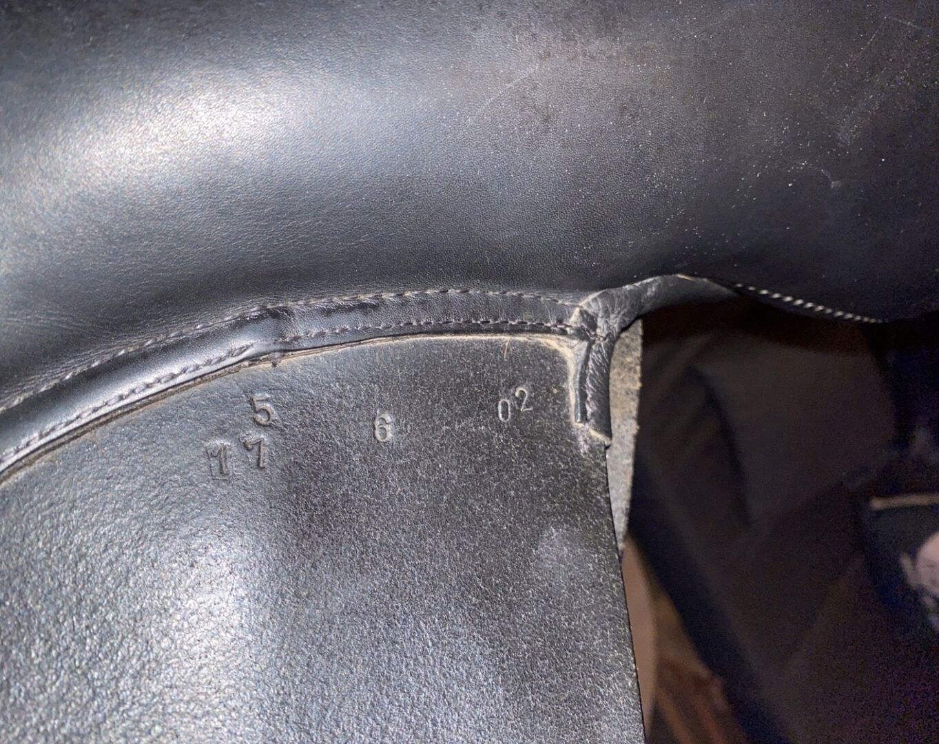 Form: VS mer inriktad på att hoppa Läderfärg: svart Skick: begagnad men bra Storlek på sätet: 17,5 Kammarens bredd: 13cm omkrets: 25cm bredd av kotkanalen: 6,5 cm i hela ryggmärgskanalen kontaktyta: 42,5cm Omslagsblad finns med, men är inte fotograferade.