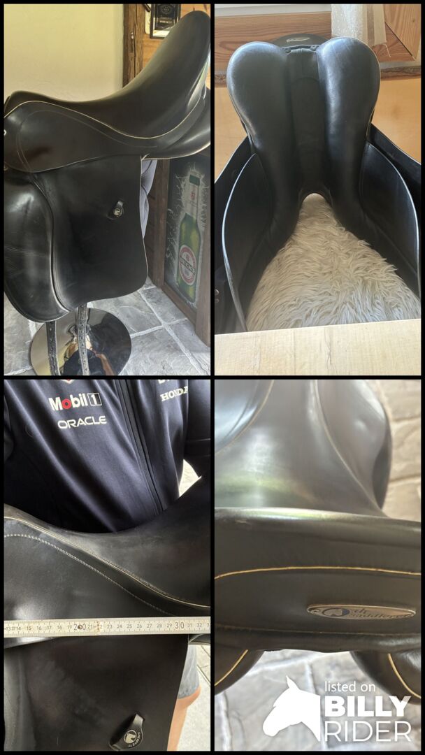 German Saddlery dressyrsadel 18" - Säljer min 18" sadel dt Saddlery äkta läder. Jag köpte den begagnad för 3,5 år sedan av en sadelmakare för €800 till min Lipizzaner. Har nyligen stoppats om och använts till min Tinker. Säljer på grund av nytt köp. Visning möjlig.