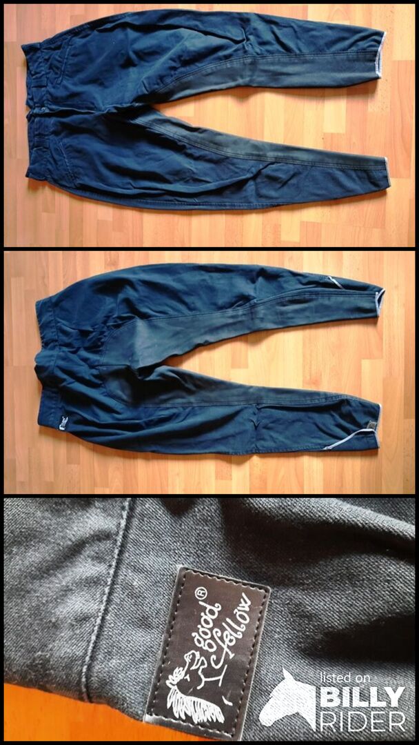 Good Fellow knäbyxor full sits storlek 44 - Jag har ett par byxor med hög midja, svarta, storlek 44, med hellädersits från Good Fellow. Byxorna har två fickor med dragkedja framtill. Byxorna är nytvättade och i gott skick. Inga hål eller andra skador. Lädret är smidigt och mjukt.
