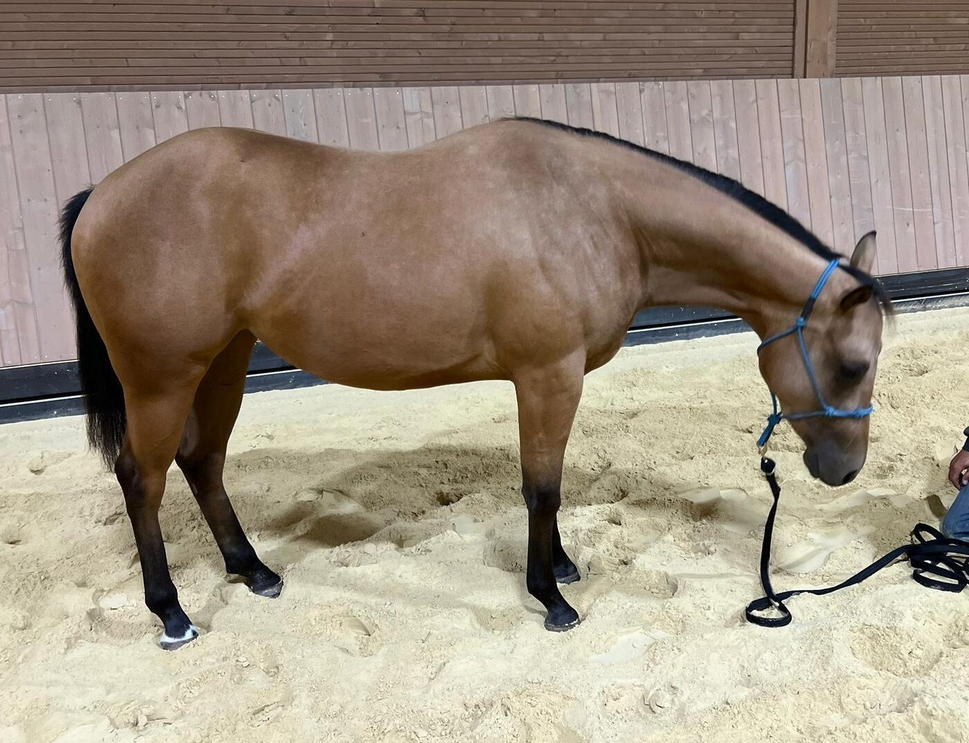 gosigt, tillgivet Quarter Horse-sto med bra pappersarbete - Ort: 56414 Hundsangen Detta stora HF Mobster barnbarn letar efter ett nytt 5-stjärnigt hem med kärleksfulla människor där hon kan bli en familjemedlem. Hon föddes 2022 med en nuvarande höjd på 147 cm. Men eftersom hon fortfarande växer kommer ytterligare några centimeter att läggas till. Melody har en solid grund och är välbyggd. Hon står för närvarande i ett öppet stall med andra unga hästar. Har aldrig varit sjuk. Väluppfostrad hos hovslagaren och har avmaskats regelbundet. Hon är vaccinerad vid leverans. Melody har en mycket söt karaktär, helt gosig och tillgiven. Hon växte upp på en gård och känner till allt som "kryper och flyger" där. Melody är haltertränad. Hon håller nu på att lära sig att arbeta från marken. Hennes far är en stilig son till den framgångsrikt visade HF Mobster. Melodys mor var också framgångsrikt utställd på EWU. Den lilla flickan är registrerad hos DQHA och kan också anmälas till EWU:s unghästprogram om så önskas. Hon kommer säkert att bli en fantastisk partner för både fritid och sport. Kommer att säljas direkt av hennes uppfödare. To the seller's offerlaunch