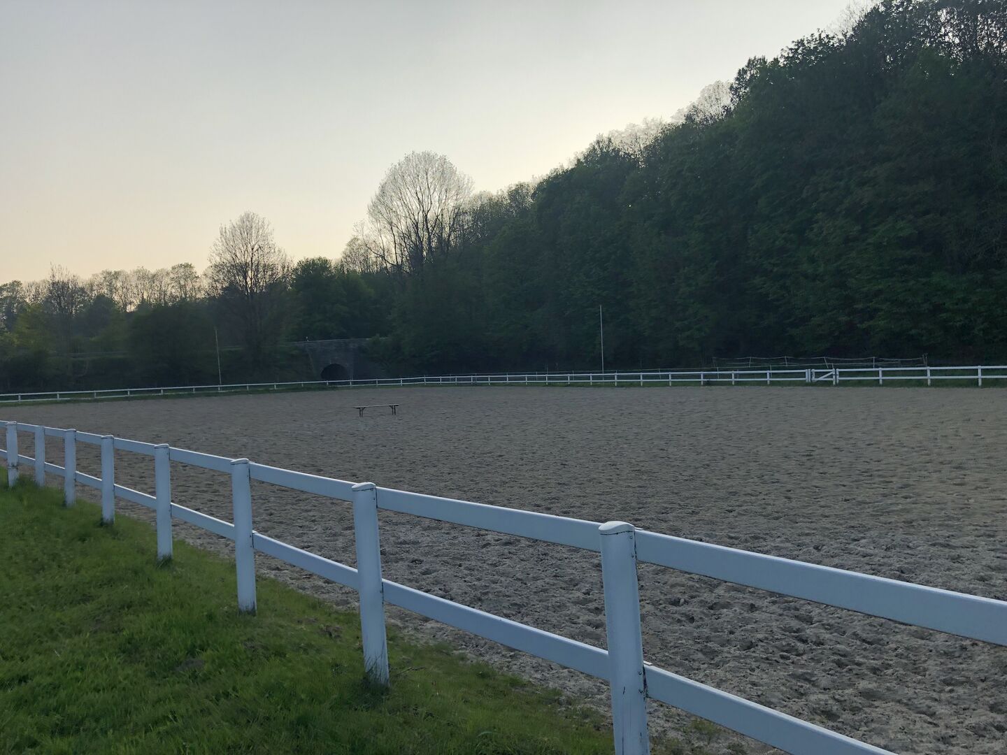 Utrustning på gården: - Stort ridhus (20x60 m) - Liten longeringshall - Stor utomhusridbana med hoppmöjligheter - Ridsalong för avkoppling - Tvättområde - Sadelförvaringsskåp - Möjlighet att parkera släpvagnar