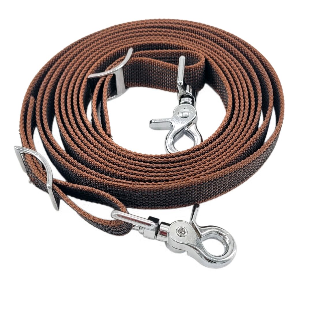 Grip tyglar storlek fullblod och varmblod brun - Klassiska & funktionella: Grepptyglar för fullblod och varmblod i brunt Grepptyglarna i brunt är det perfekta valet för ryttare som värdesätter tillförlitlighet och komfort. Med sin klassiska färg passar de till alla träns och de integrerade gummilisterna ger ett säkert grepp - även med handskar eller i vått väder. Mega greppvänliga och superlätta Dessa tyglar imponerar med sitt sofistikerade utförande: 20 mm breda - perfekt för bekväm hantering 3,0 m långa - perfekta för fullblod och varmblod Med integrerat gummi - extra grepp, även i våta förhållanden Saxkarbinhake - robust och enkel att använda Mycket lätt - ligger skönt i handen, även under längre ridturer To the seller's offerlaunch