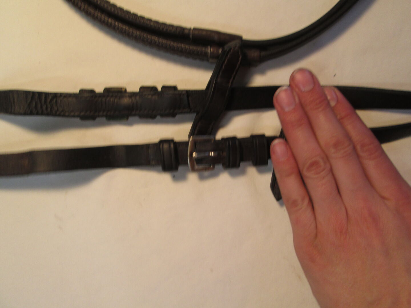 Gummizymmar med nappar WB Full Black Rubber Reins - Till salu är ett par gummitillar med knoppar och spänne i rostfritt stål.