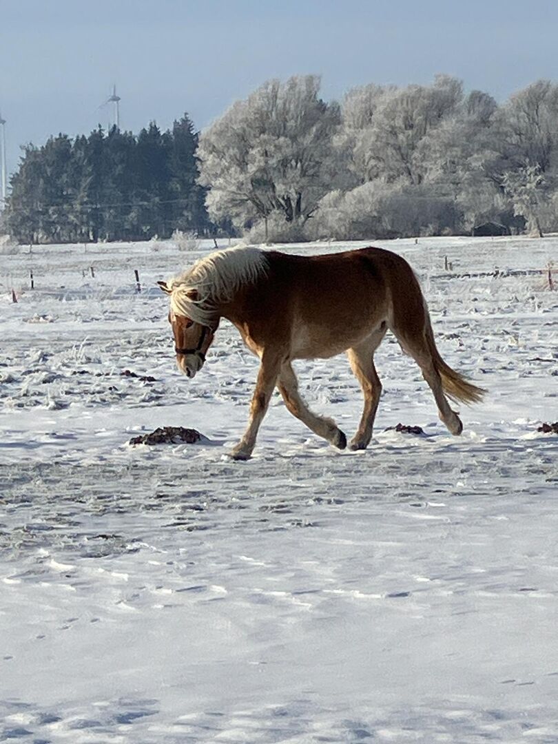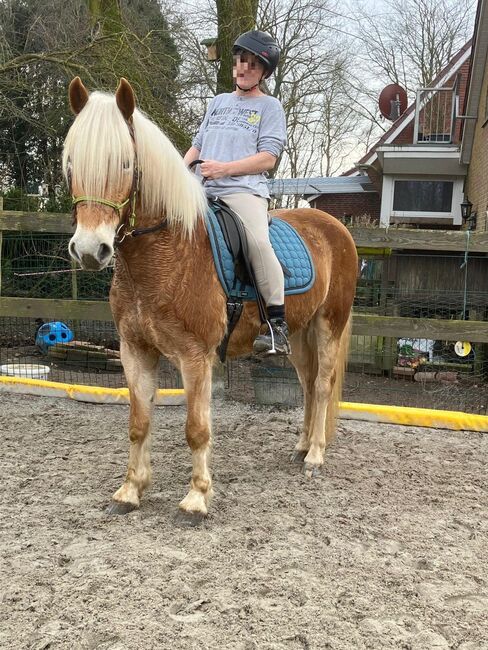 Härlig, begåvad Haflinger-unge söker en stödjande partner - Plats: 26427 Holtgast Bonar är en vacker Haflinger valack, född i april 2022, med en höjd på ca. 150 cm. Han är korrekt byggd, kompakt och frisk och imponerar med sitt harmoniska övergripande utseende. Bonar växte upp under de bästa förhållandena och med mycket kärlek och har en särskilt snäll, människoorienterad karaktär. Han är nyfiken, lugn, avslappnad och inte nervös. Han är alltid väluppfostrad, villig att lära sig och öppensinnad i den dagliga kontakten och har ett fantastiskt temperament. Valacken är socialt kompatibel, lever i en blandad besättning och är van vid att hållas i ett öppet stall med en stor paddock. Han är väluppfostrad och pålitlig hos veterinären, hovslagaren och vid lastning, kör släpvagn och kan även lastas ensam utan problem. Bonar är regelbundet vaccinerad och registrerad i Westphalian Stud Book. Han har redan blivit inriden under sin utbildning och är väluppfostrad under sadel i alla tre grundgångarterna. Han är bekant med både västerländska och engelska sadlar och är alltid samarbetsvillig och villig. Med sin positiva attityd, sitt lugn och sin goda förståelse är han en fantastisk unghäst som kommer att bli mångsidig med ytterligare träning. Bonar är perfekt för den som vill utvecklas tillsammans med sin fyrbenta partner och som lägger stor vikt vid karaktär, pålitlighet och kvalitet.