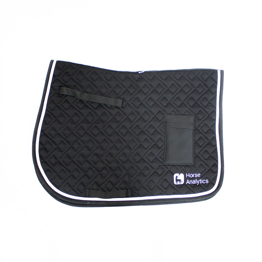 Häst Analytics Saddle Pad Black VS - Horse Analytics sadelunderlag hjälper dig att förbättra din träning. Den är utformad för att förbättra gånganalysen i Horse Analytics-appen med ca 5-10 %. Fördelen är den direkta kontakten med hästen. Mobiltelefonen placeras i den fastsydda neoprenfickan i stället för att ligga i byxfickan. Detta gör att träningen kan analyseras ännu mer exakt av appen. Materialet i mobilfickan skyddar den också mot smuts, vatten, svett och smuts. De flesta smarttelefoner får plats i fickan. Den har ett innermått på 10,5 x 17,5 cm. Den här sadelunderlägget kan också användas perfekt för ridturer eller daglig träning. Det svarta sadelunderlaget är tillverkat av 80 % polyester och 20 % bomull. Den är i mycket gott skick. To the seller's offerlaunch