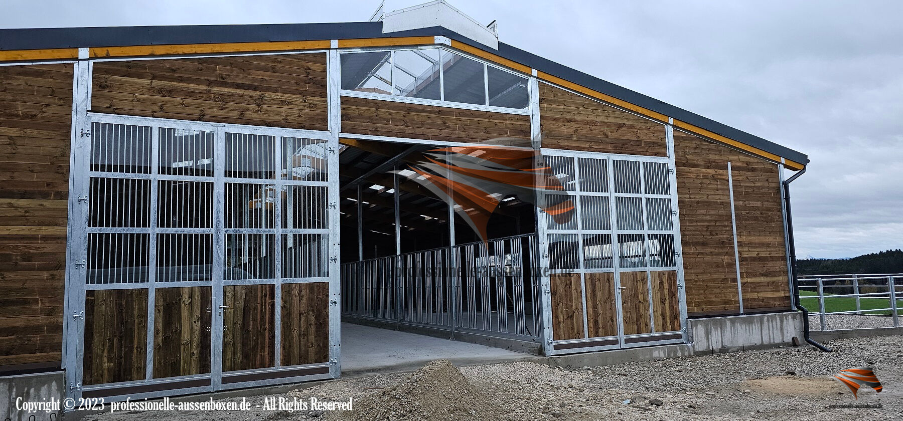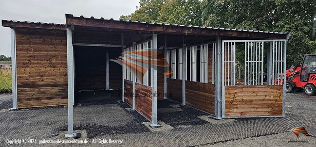 Hästboxar, beteshagar & skydd - Stallbyggnad & idealiskt stallbygge för hästar - Webb: www.professionelle-aussenboxen.de