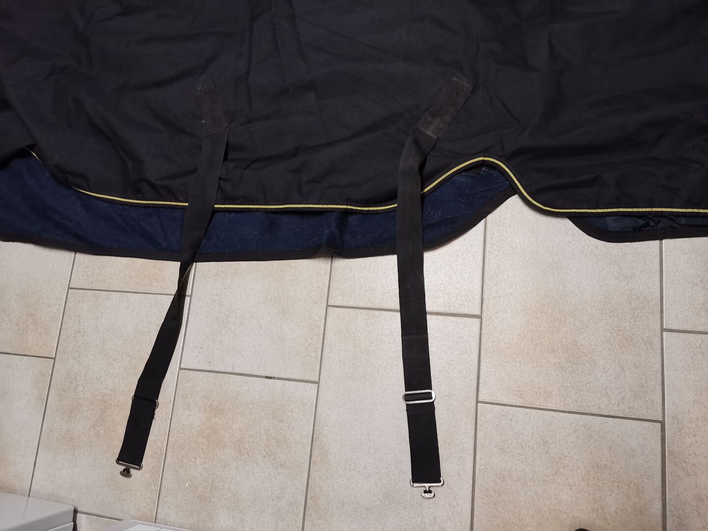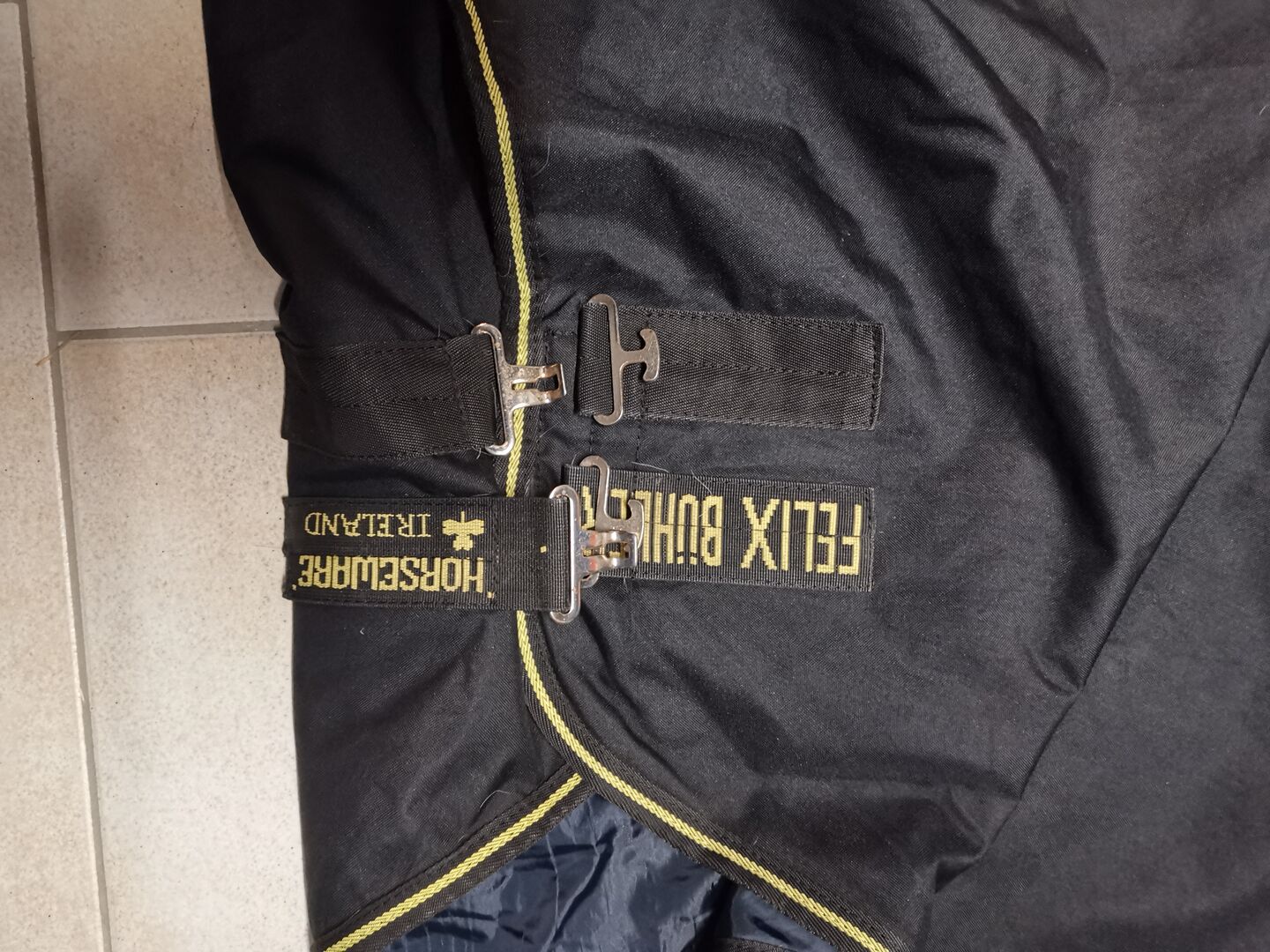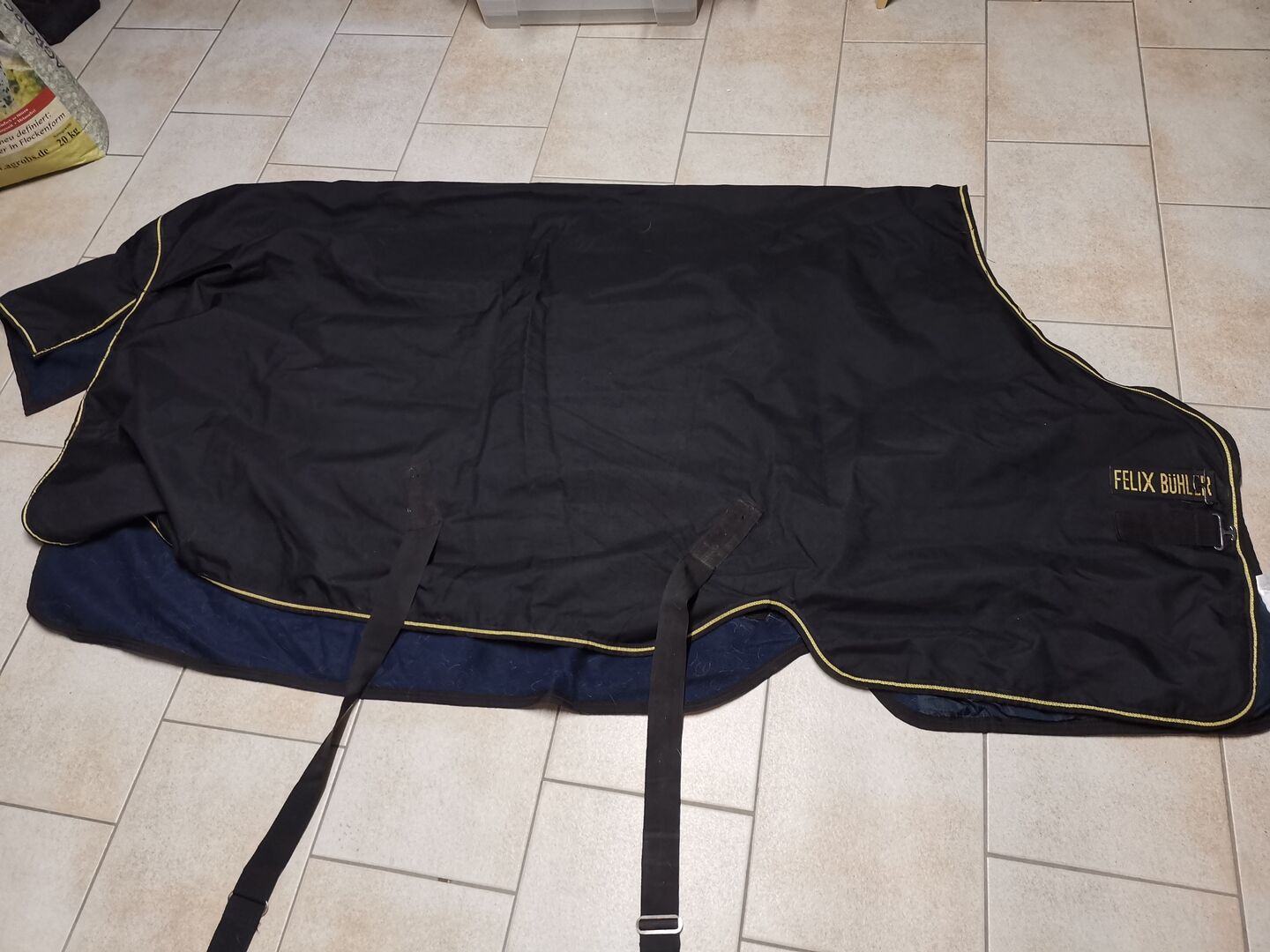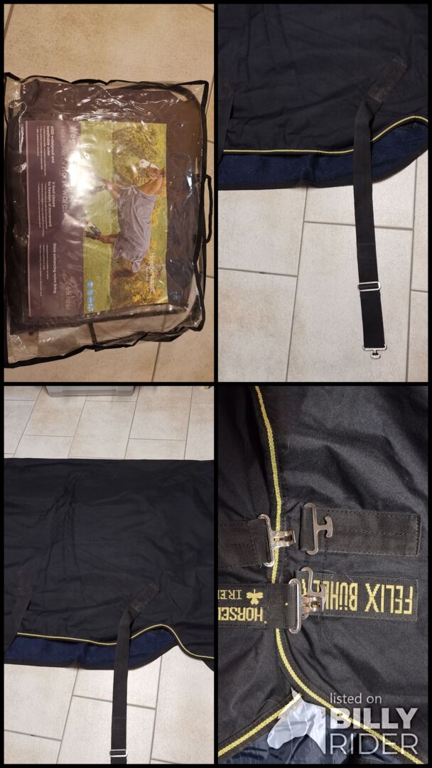 Hästfilt - Utomhusfilt från Felix Bühler Horseware Ireland, storlek 145, - Sälj begagnade hästtäcken - utomhusfilt av. Felix Bühler Horseware Ireland, storlek 145, insida med fleece, utan fyllning, färg: utsidan svart, insidan fleece mörkblå. Täcket är rengjort och impregnerat, lätt nedsmutsning på grund av hästhår (se foton). Täcket är utan skador, inga revor eller hål, alla fogar utan skador. Täcket skickas i en medföljande plastväska för transport/skydd.