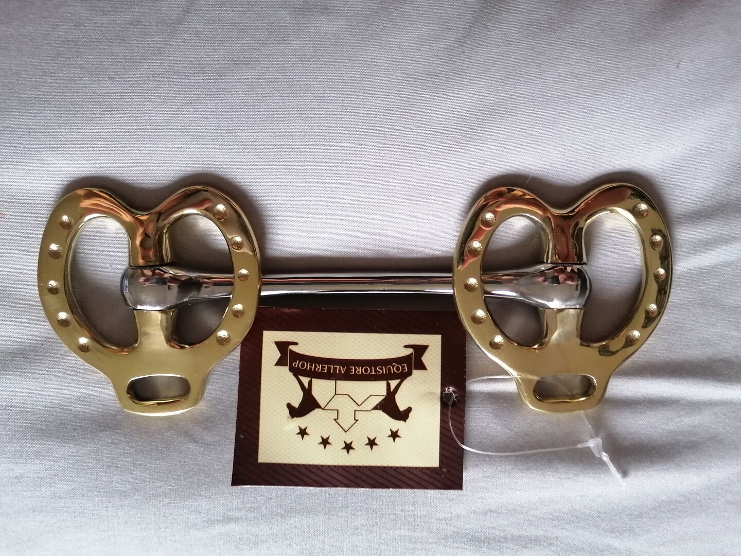 Hästskobett, stångbett, show-snöre - Jag erbjuder en ny bit i storlek 10.5. Bar något böjd som visas. Bettet är guld och skulle vara tillgängligt 2 gånger.