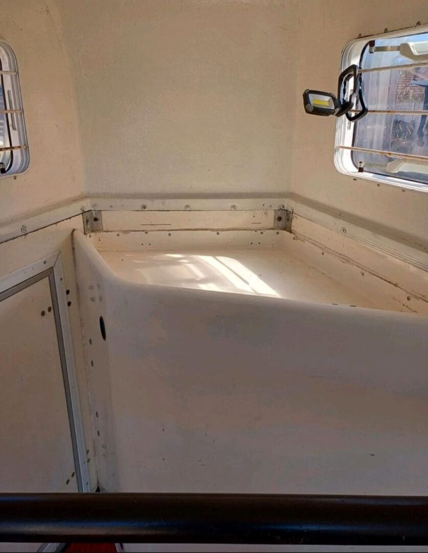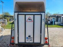 Hästsläp Rettenmaier 1.5 små hästar - Säljer vår 1,5 hästvagn från Rettenmaier med ny MOT för små hästar, ponnyer etc. på grund av en ökning av hästar. Bromskablarna, dragstången och de fyra däcken förnyades under MOT. Lastklaffsdämparna förnyades också, släpvagnen har en mycket låg tomvikt och kan manövreras enkelt för hand. Mer detaljerad data Foto godkännande. Mittvägg finns men är inte monterad. Sadelkammare, sidoutgång, fodertråg, nytt halkskydd, förvaringslåda på sidan för spade etc. Kontakta oss gärna om du har några frågor.