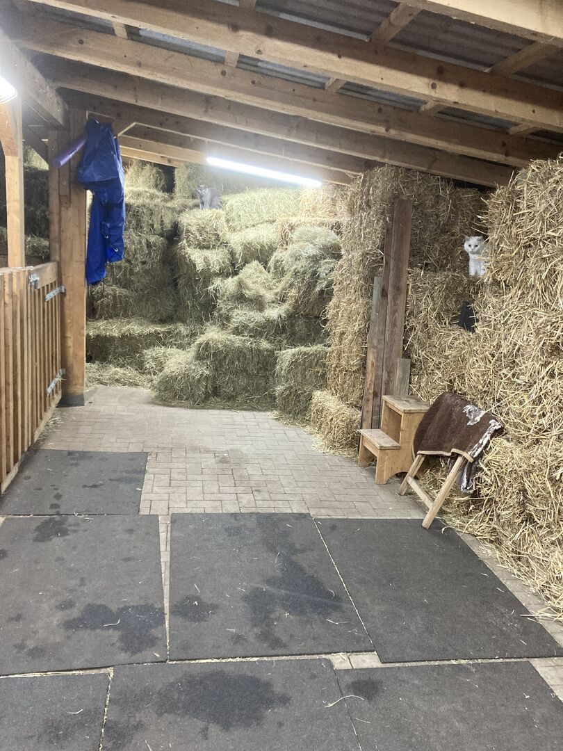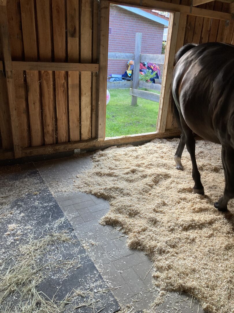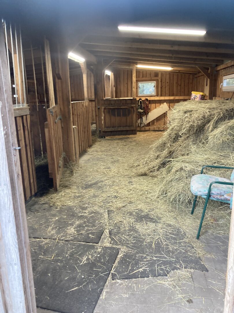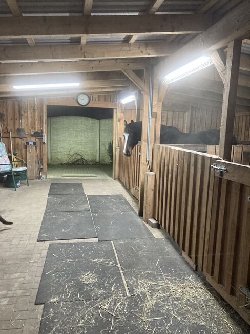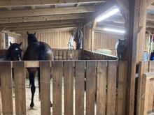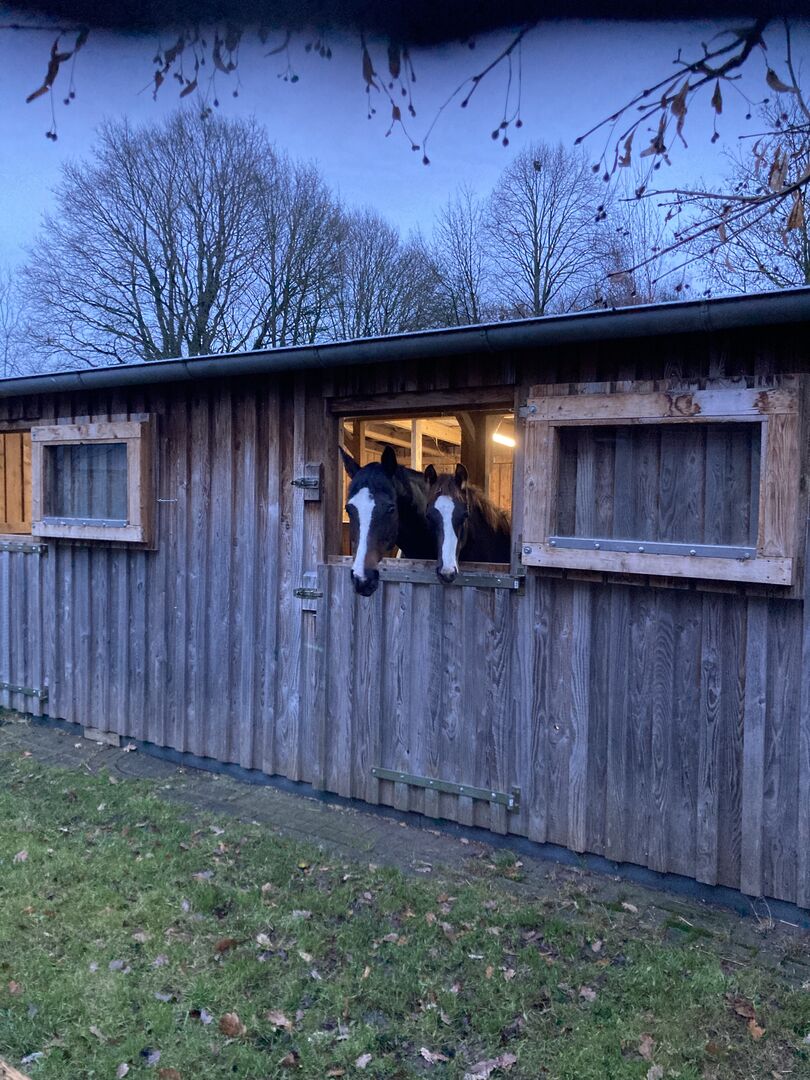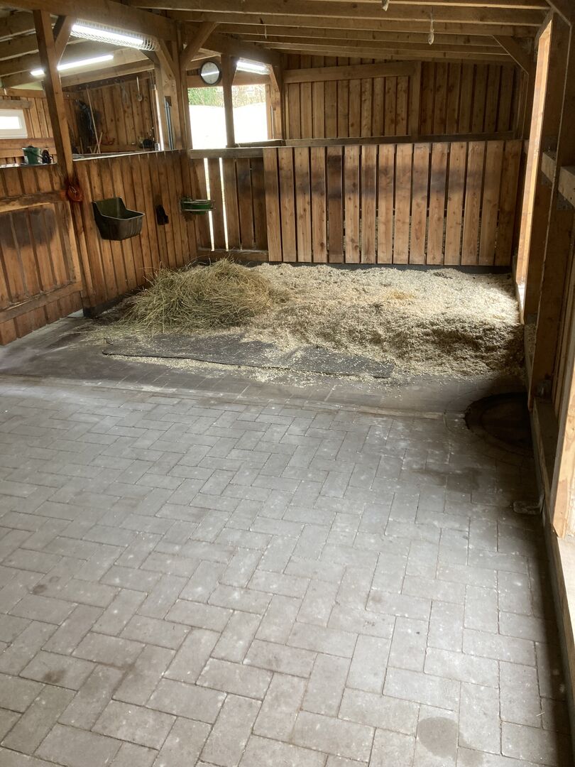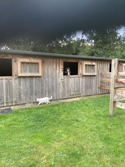Häststall Beteshage Alpacastall - Häststall av robust lärkträ av hög kvalitet för upp till 6 stora hästar, vardera 3,50 x 3,50 m. Inredningen kan skräddarsys. Lämpar sig även som öppet stall och beteshage. 3 specialanpassade ponnydörrar med säkerhetsglas för ökad komfort för hästarna. Ett ponnystall med cloche-dörr. För närvarande en stor box, t.ex. som fölningsbox 3,50 m x 7 m. Trapetsformad plåt med droppskyddande beläggning. Byggd i moduler med punktfundament. Ljuslister ersatta av fönster. 3 inre boxdörrar solida och generöst tilltagna. Säljs på grund av omlokalisering. Stallet bör demonteras inom 2 månader. Yttermått ca 7,60 x 10,80 meter. Konstruktionen av trästallet garanterar frisk lufttillförsel hela tiden.