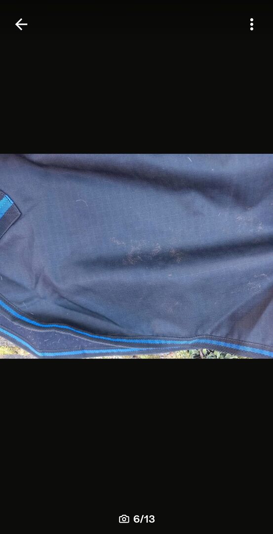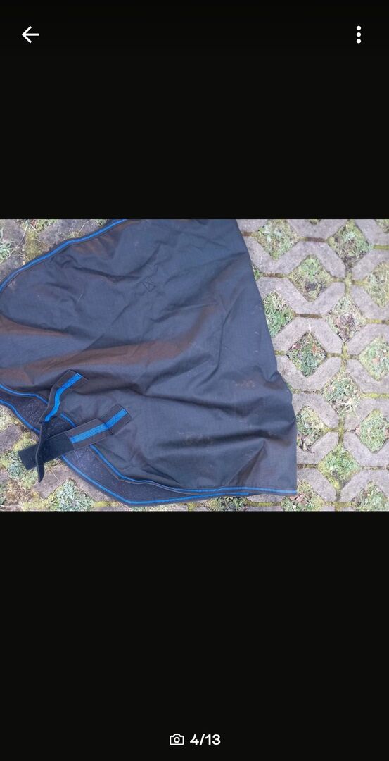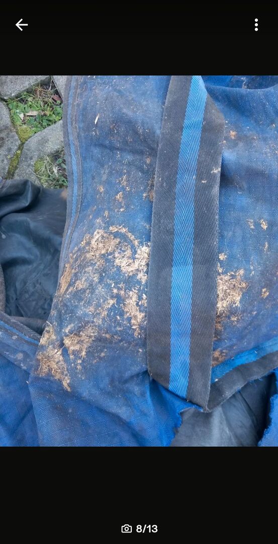 Hästtäcke polarfleece 145 med halsdel - Täcke med polarfleece i 145 med avtagbar halsdel. Halsdelen har bara varit på hästen en gång. Täcket har tyvärr en reva på ena sadelgjorden (se bild), men kan enkelt sys för hand eller med symaskin& karbinhaken på ena benremmen är trasig (se bild). Nya benremmar finns tillgängliga & kan köpas för 10€. I övrigt inga skador. Filten är från RL24 och nypriset eller inköpspriset var 69,95€. Vänligen skicka mig prisförslag. Privat försäljning, därför ingen retur, garanti eller garanti. Helst upphämtning i RE-Nord eller frakt mot betalning av kostnaderna möjligt. Privat försäljning, därför ingen garanti, garanti eller retur.
