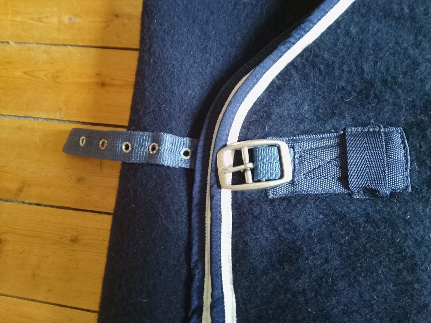 Hästtäcke tillverkat av naturmaterialet ull som ett alternativ till syntetiska fibrer - *Hästtäcke* - Den här är gjord av ull, oskadad, alla fästelement är i gott skick och har använts lite. Jag har mätt längden på täcket. Den är 130 cm från korset till manken.