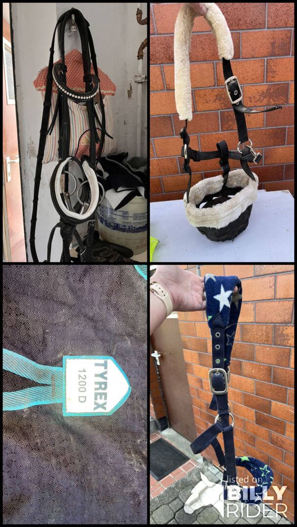 Hästtillbehör - Hej kära ni Jag säljer alla mina hästprylar eftersom mitt sto fick gå över regnbågsbron :( Om ni har några frågor är det bara att höra av er. Om du vill kan jag också skicka andra bilder till dig. Filtarna är 155.