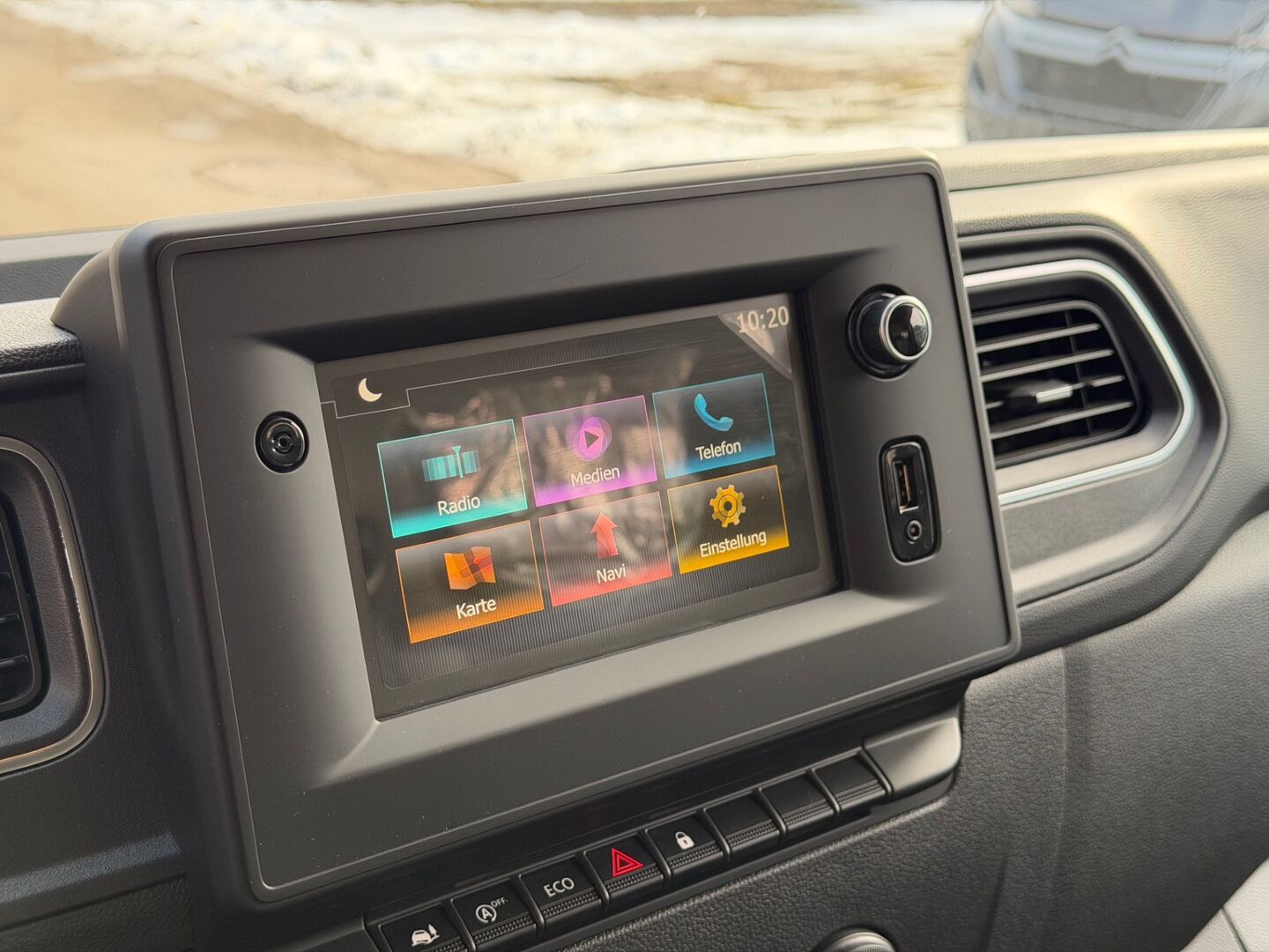 Renault Master 165 hk EURO 6-motor, 3 säten, manuell växellåda, laddningsstation för mobiltelefon, satellitnavigering, sätesöverdrag i läderimitation, krockkudde för förare och passagerare, DAB+ radio med Bluetooth handsfree-system, multifunktionsratt, manuell luftkonditionering, skärm för videoövervakning av hästutrymme och backkamera, temperaturövervakning av hästutrymme, fläktstyrning av hästutrymme